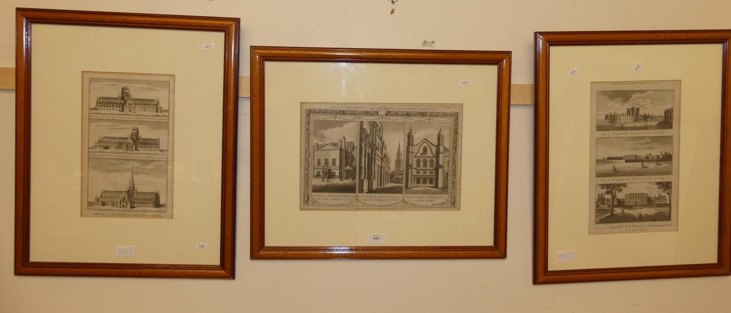 3 Framed Victorian Engravings London Scenes