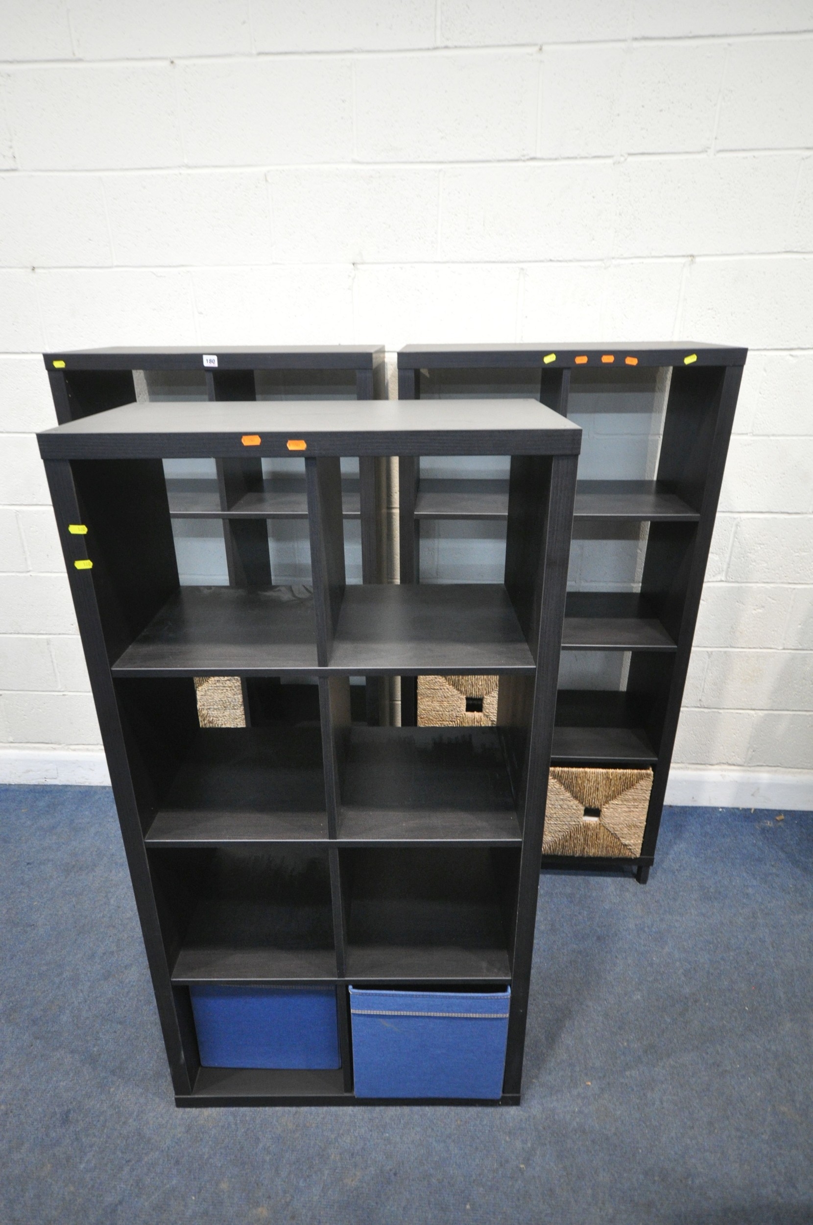 THREE IKEA STORAGE UNITS, one with legs, two without, width 77cm x depth 39cm x height 155cm, condition report: general signs of usage to all, one leg broken (3)