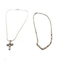 Two sterling silver necklaces and a silver cross with CZ stones.