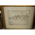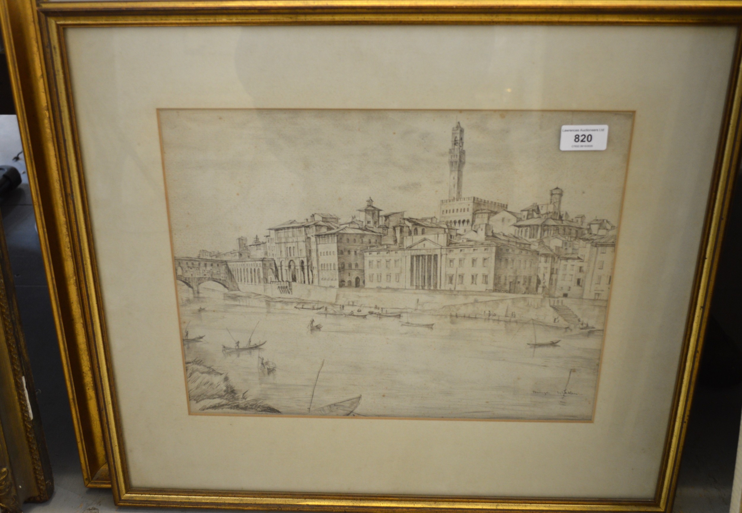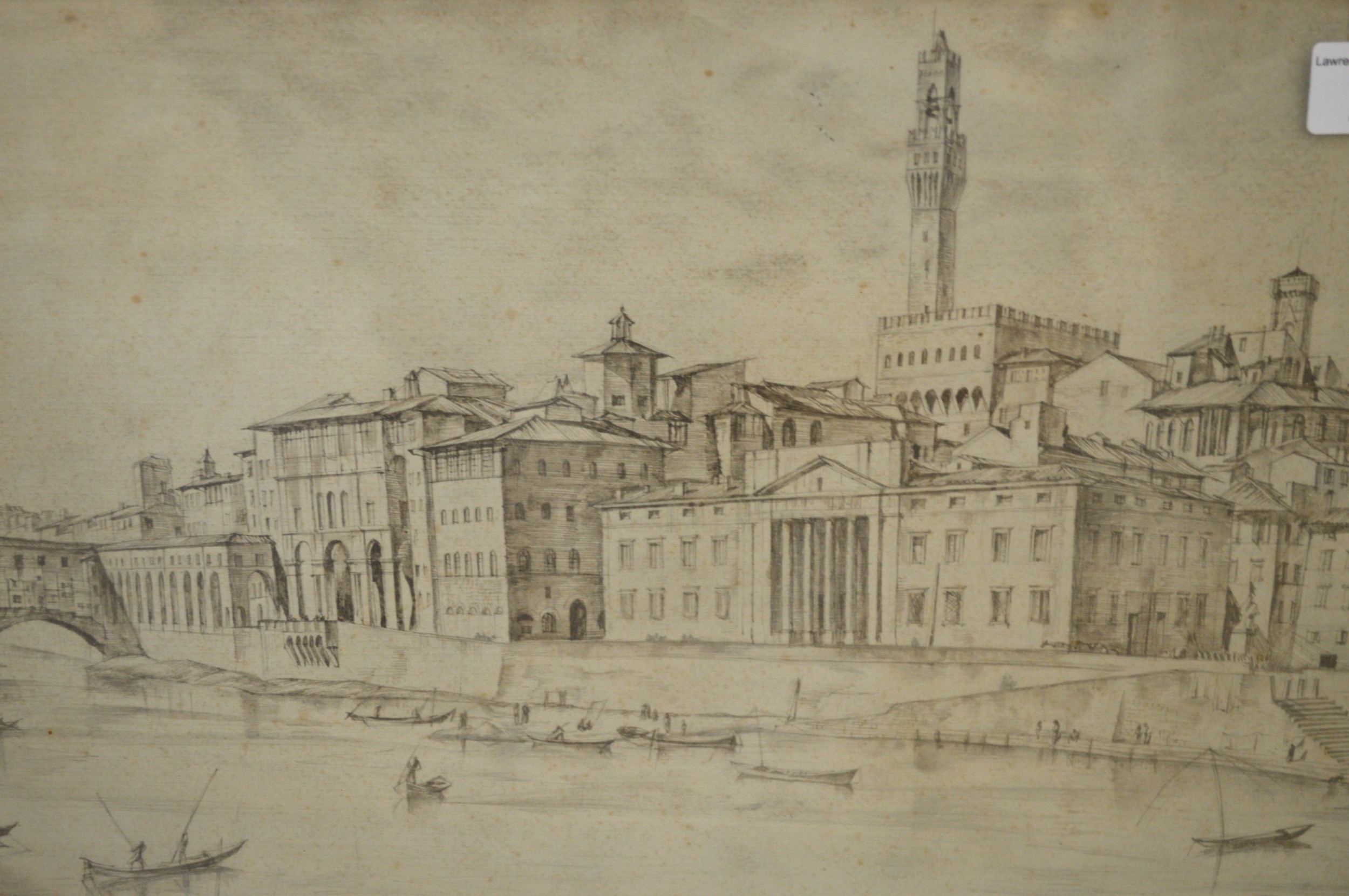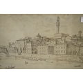 William Wilson, original pen and ink drawing, Firenza with various figures and boats, signed W. Wilson, 30 x 39cm, gilt framed