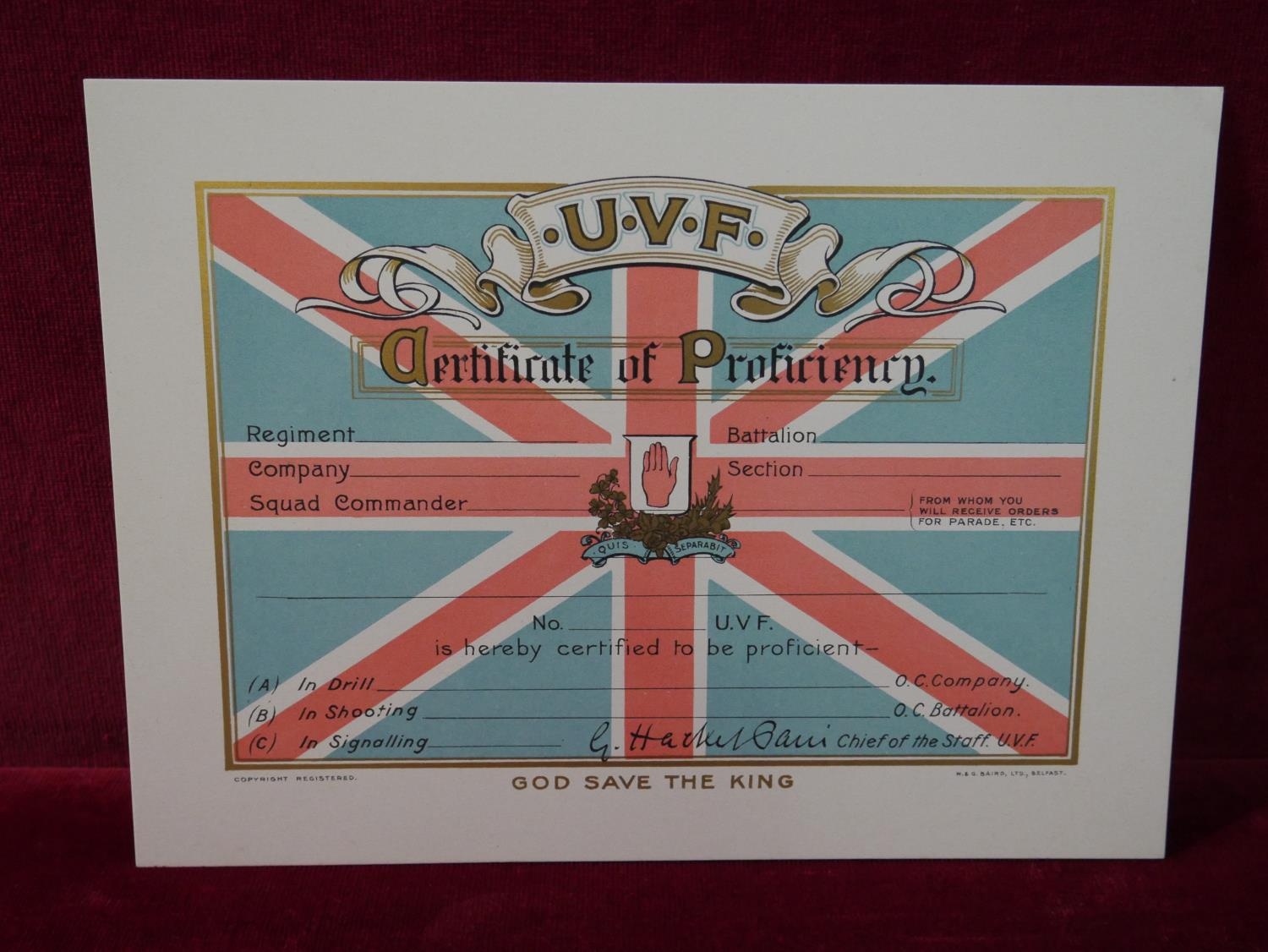UNISSUED UVF PROFICIENCY CERTIFICATE