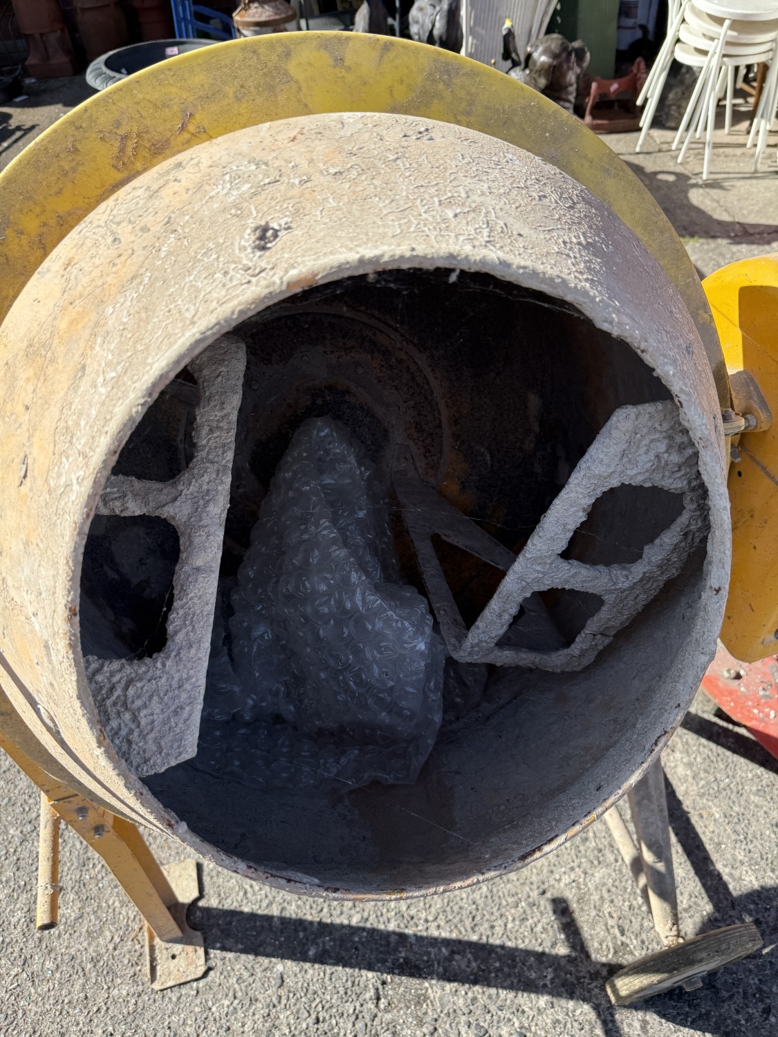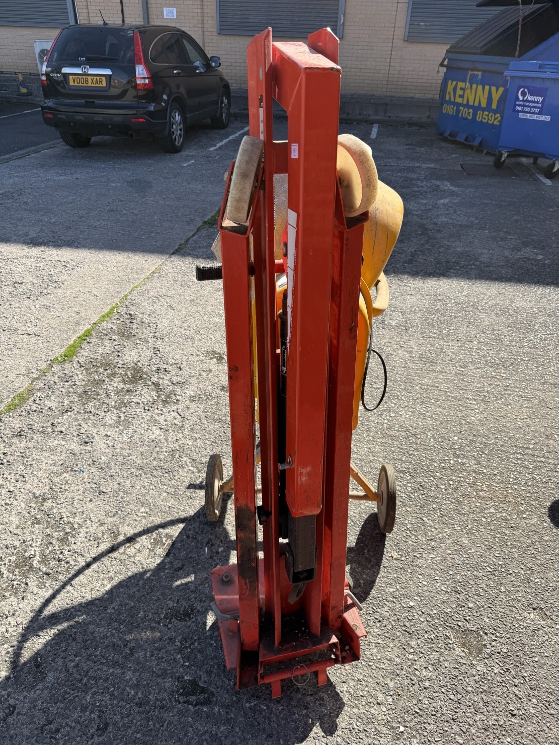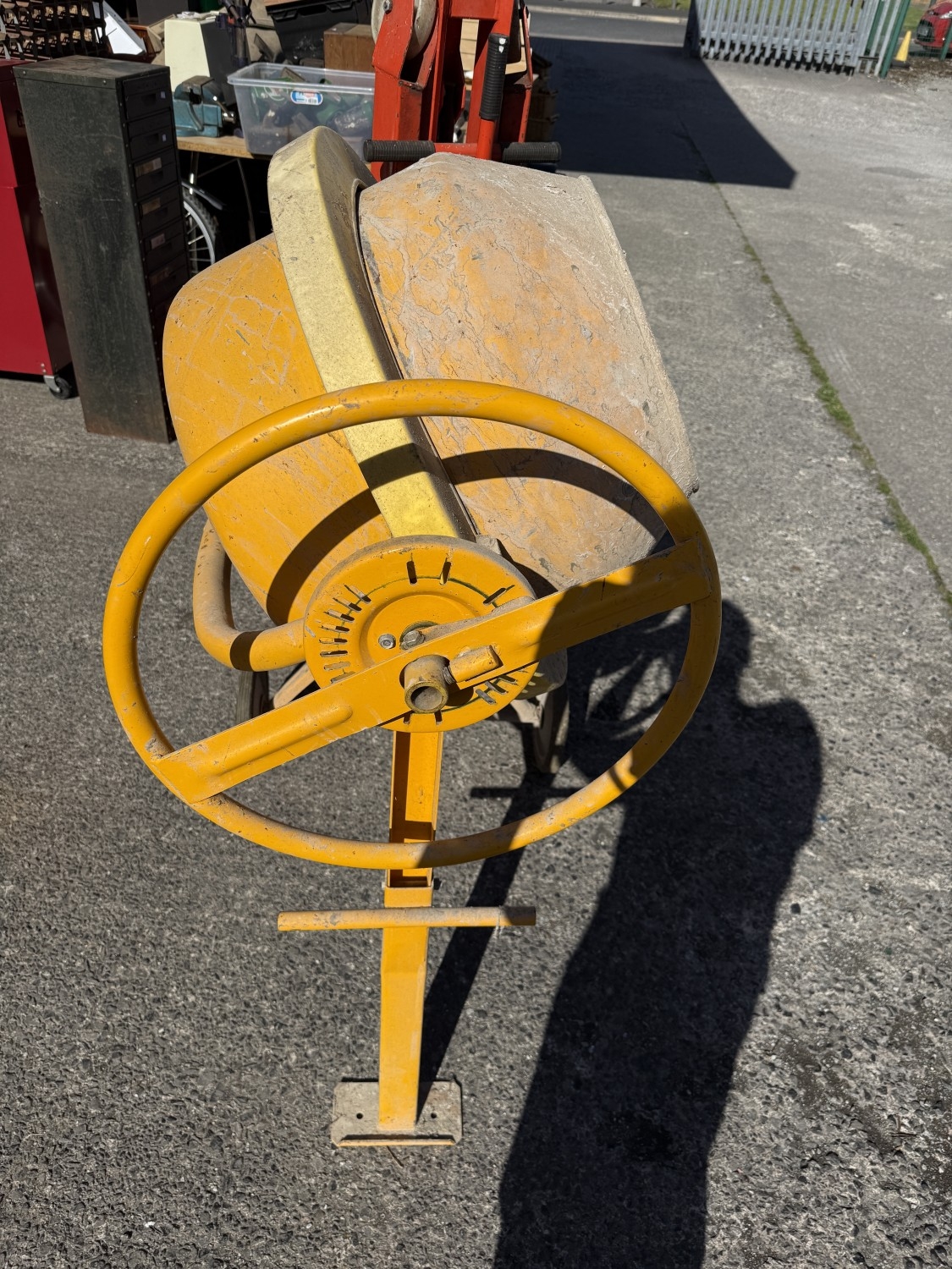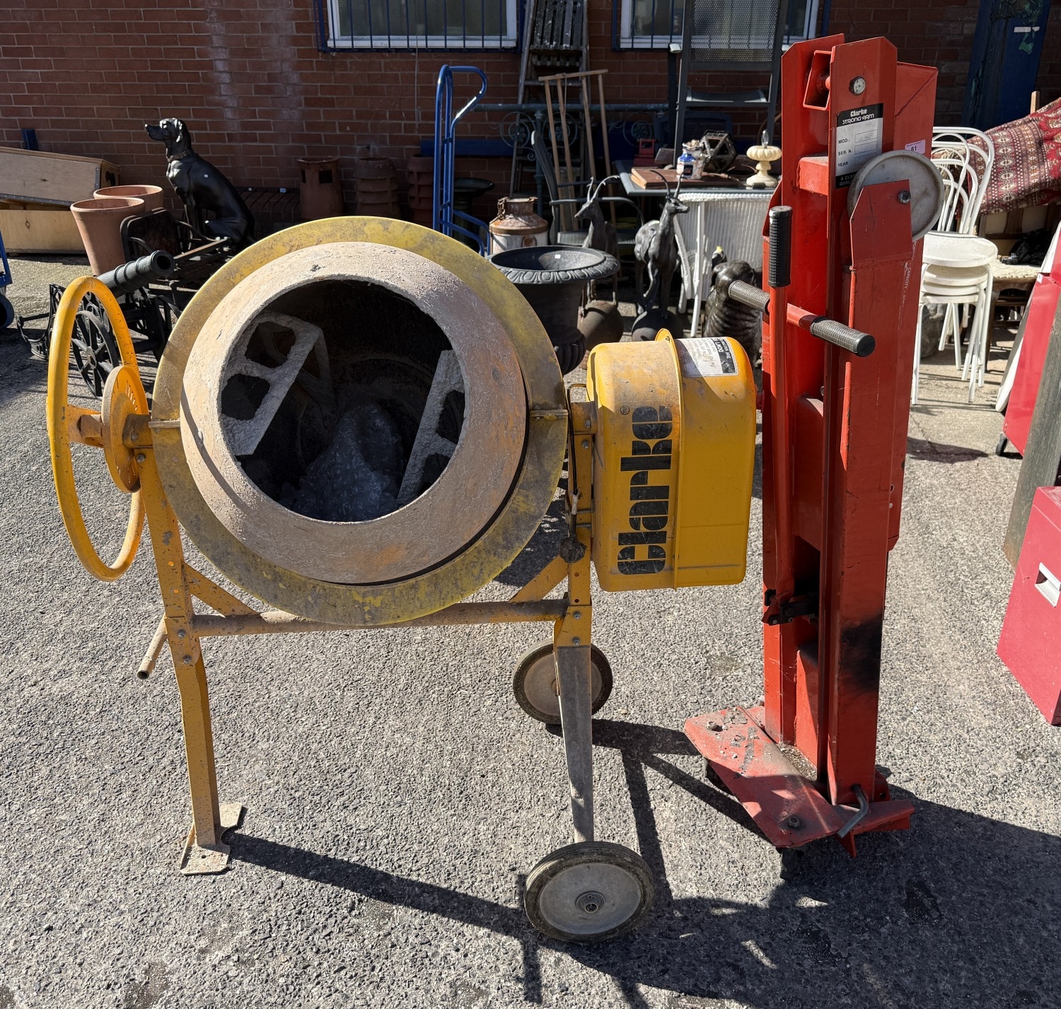 A Clarke CCM125C 250v concrete mixer and a Clarke strong arm device.