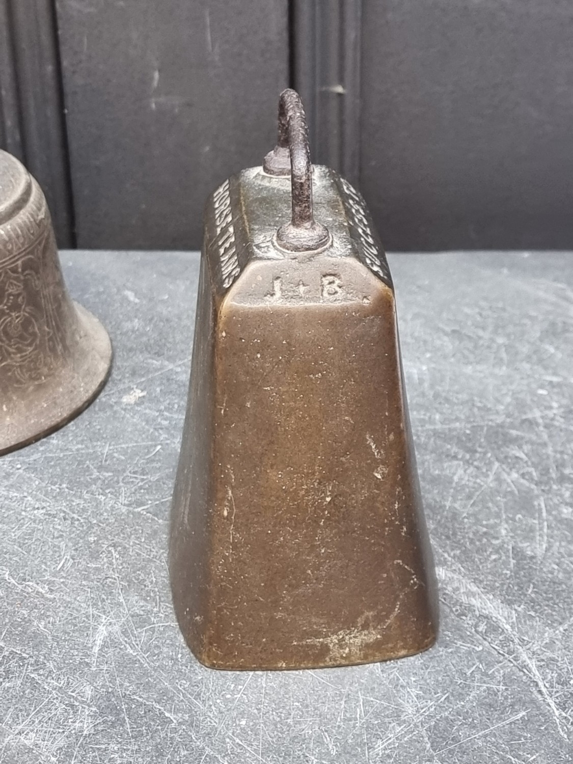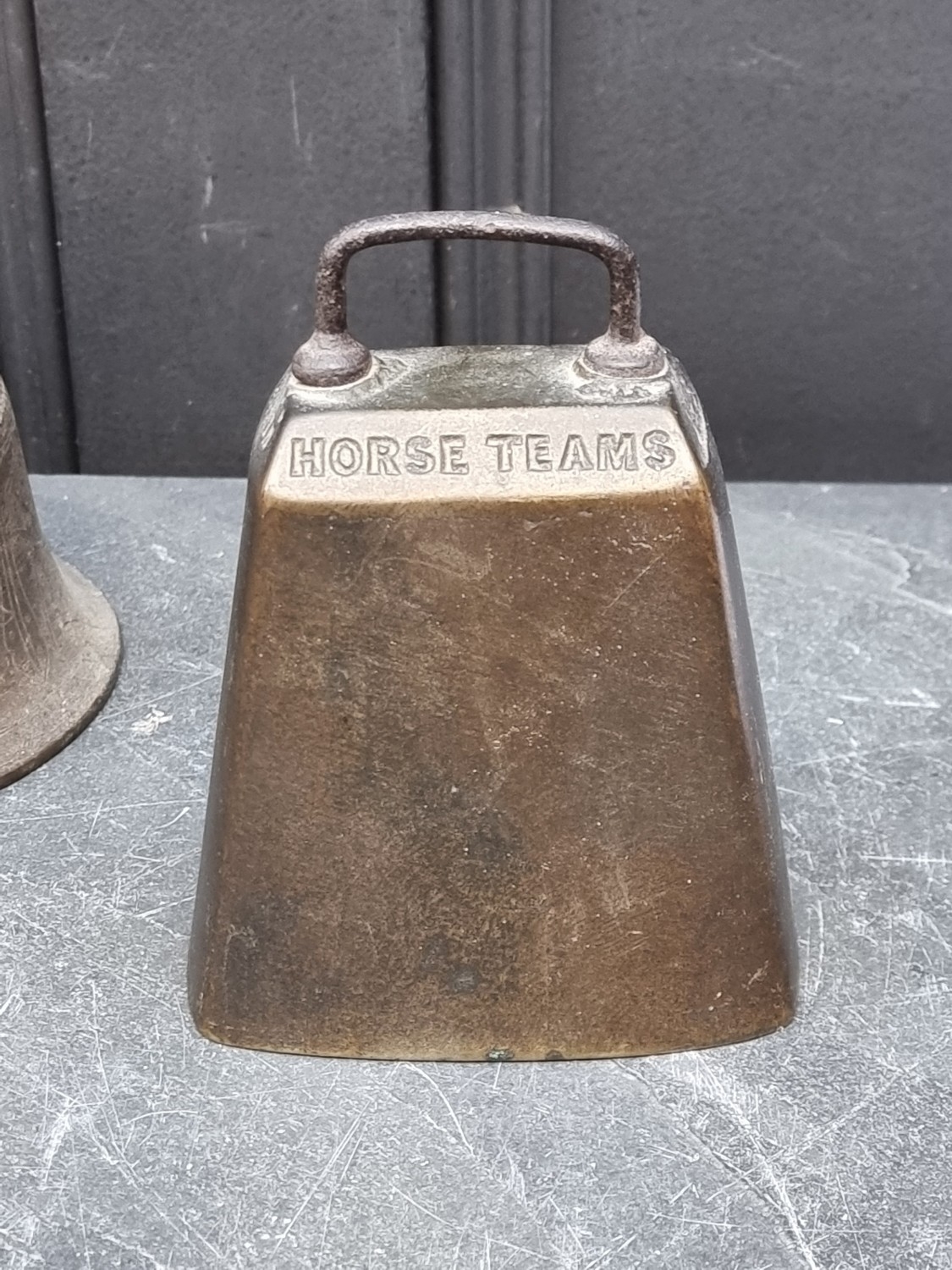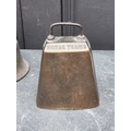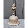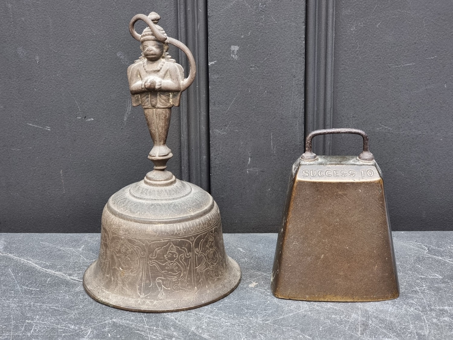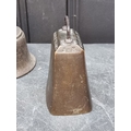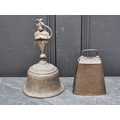 A 19th century Indian bronze bell, 23.5cm high; together with another bronze bell, inscribed 'Success To Horse Teams', 14cm high. (2)