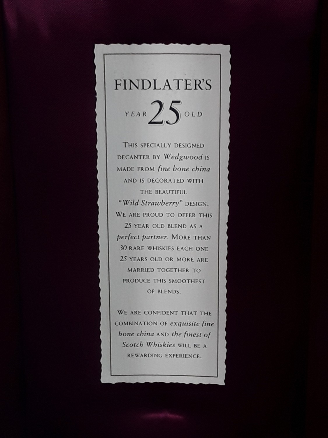 Findlater's 25 year old Blended Scotch Whisky in Wedgewood Wild Strawberry decanter with wooden box, 43%, 70cl