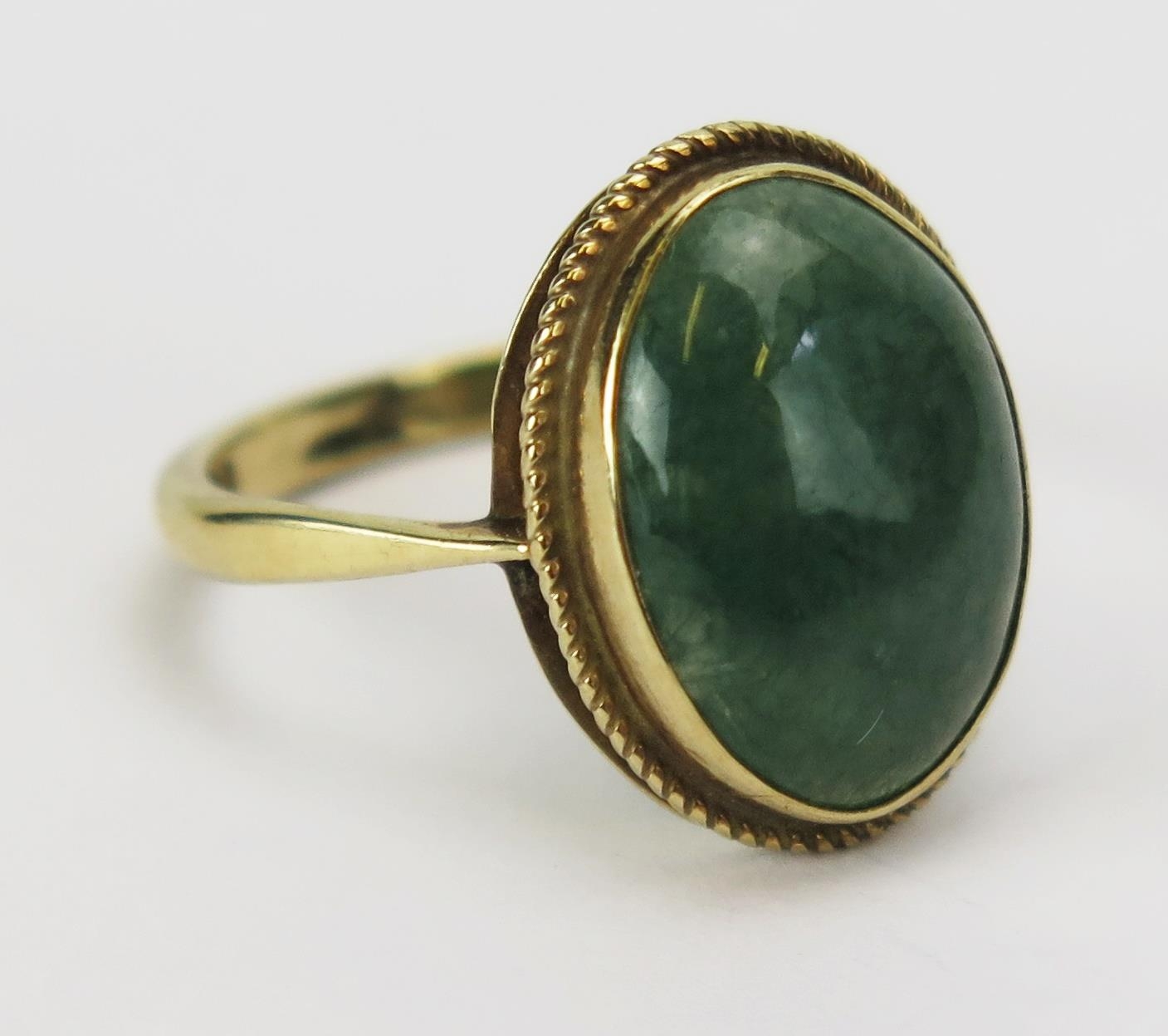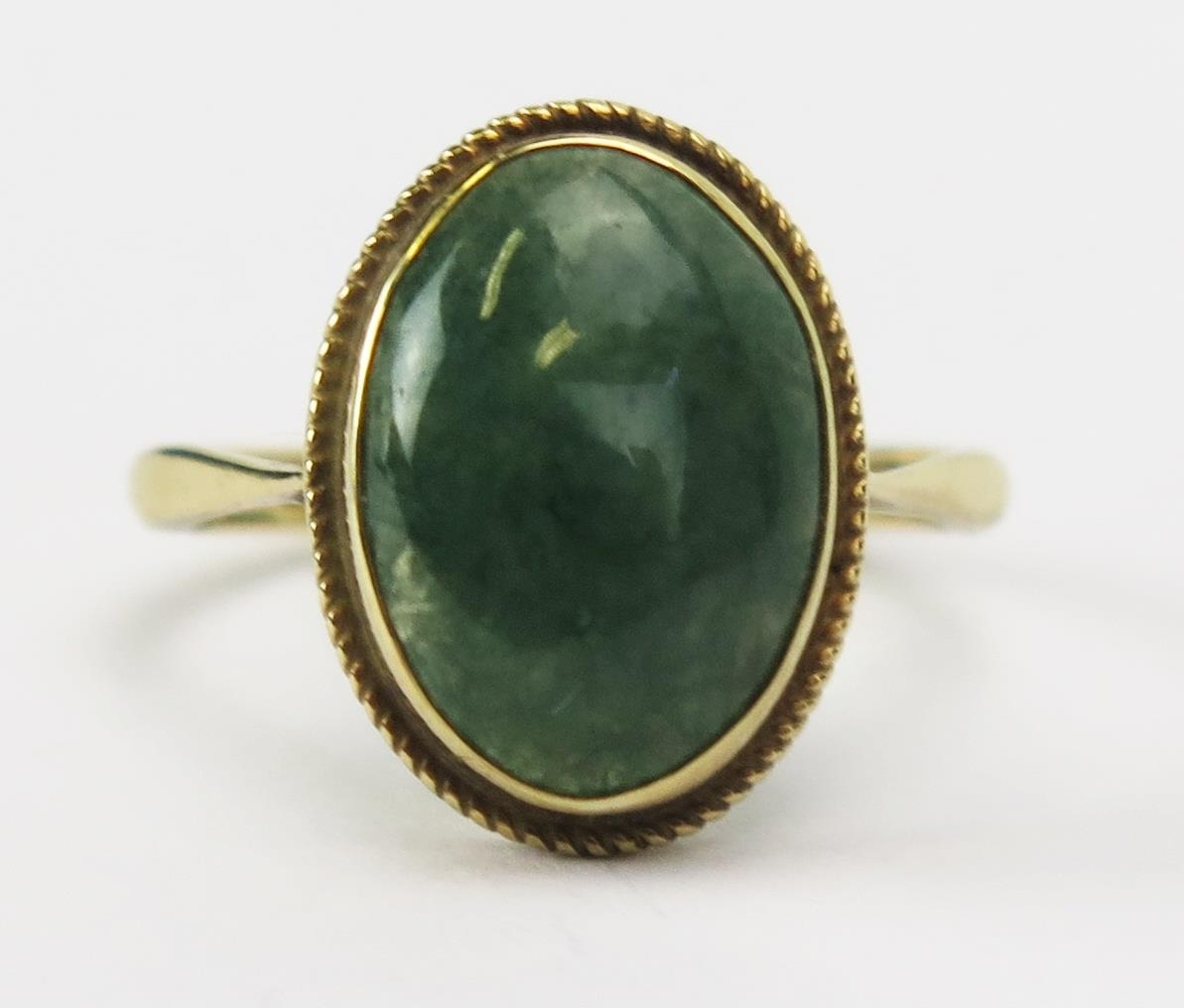 A 9ct Gold and Jade Ring, size M, hallmarked, 2.78g