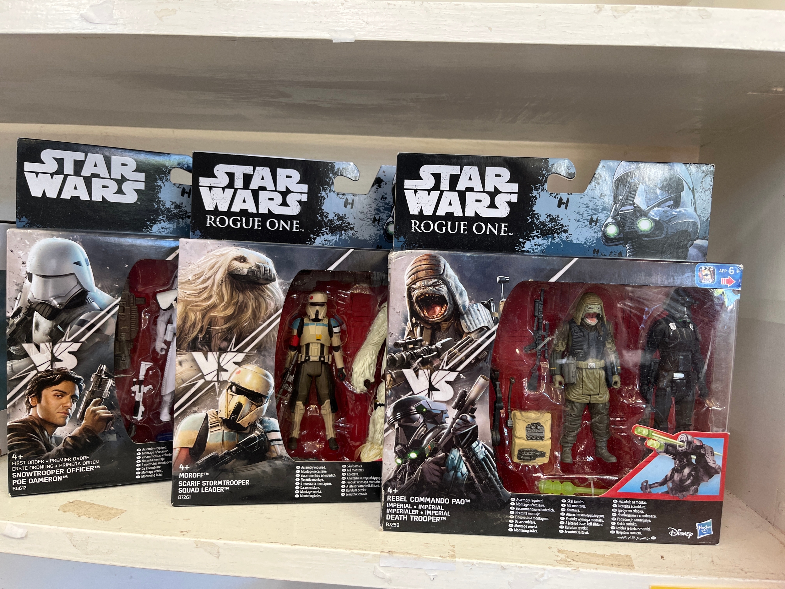 3 x Star Wars figures - Rogue One, rebel Commando Pao Death Trooper, Scarif Storm trooper Squad leader and Snowtrooper officer Poa Damerom, all new and boxes