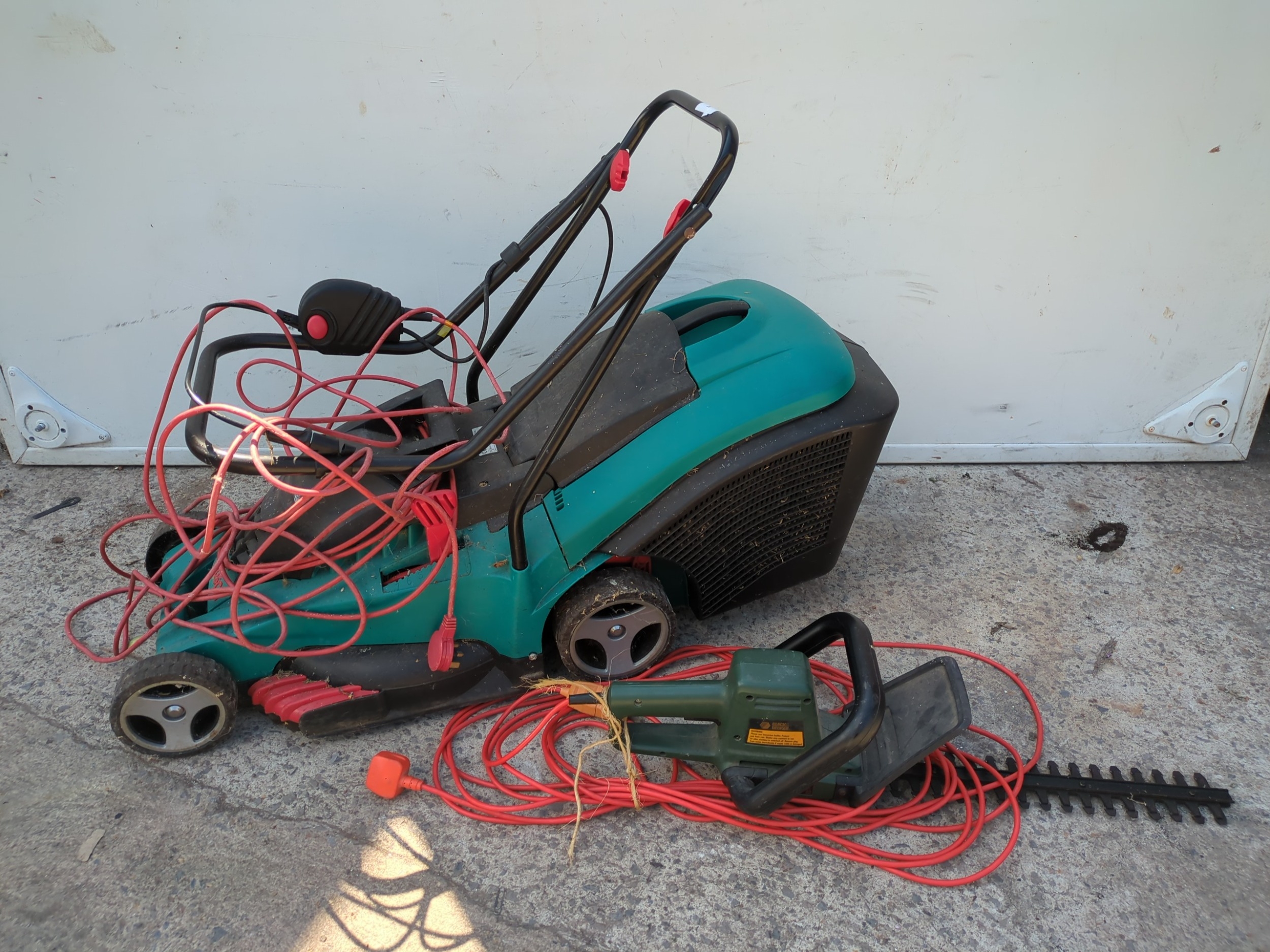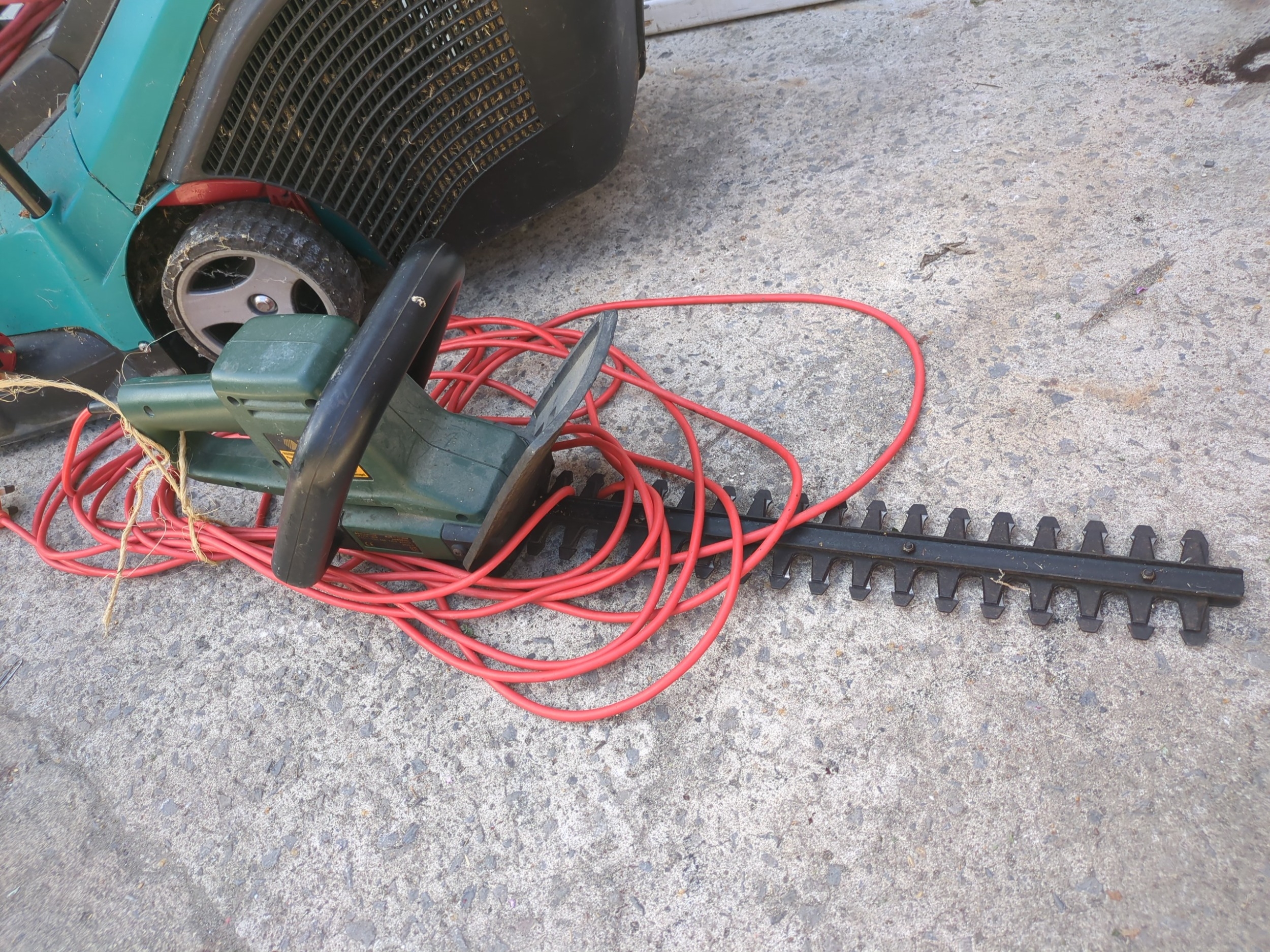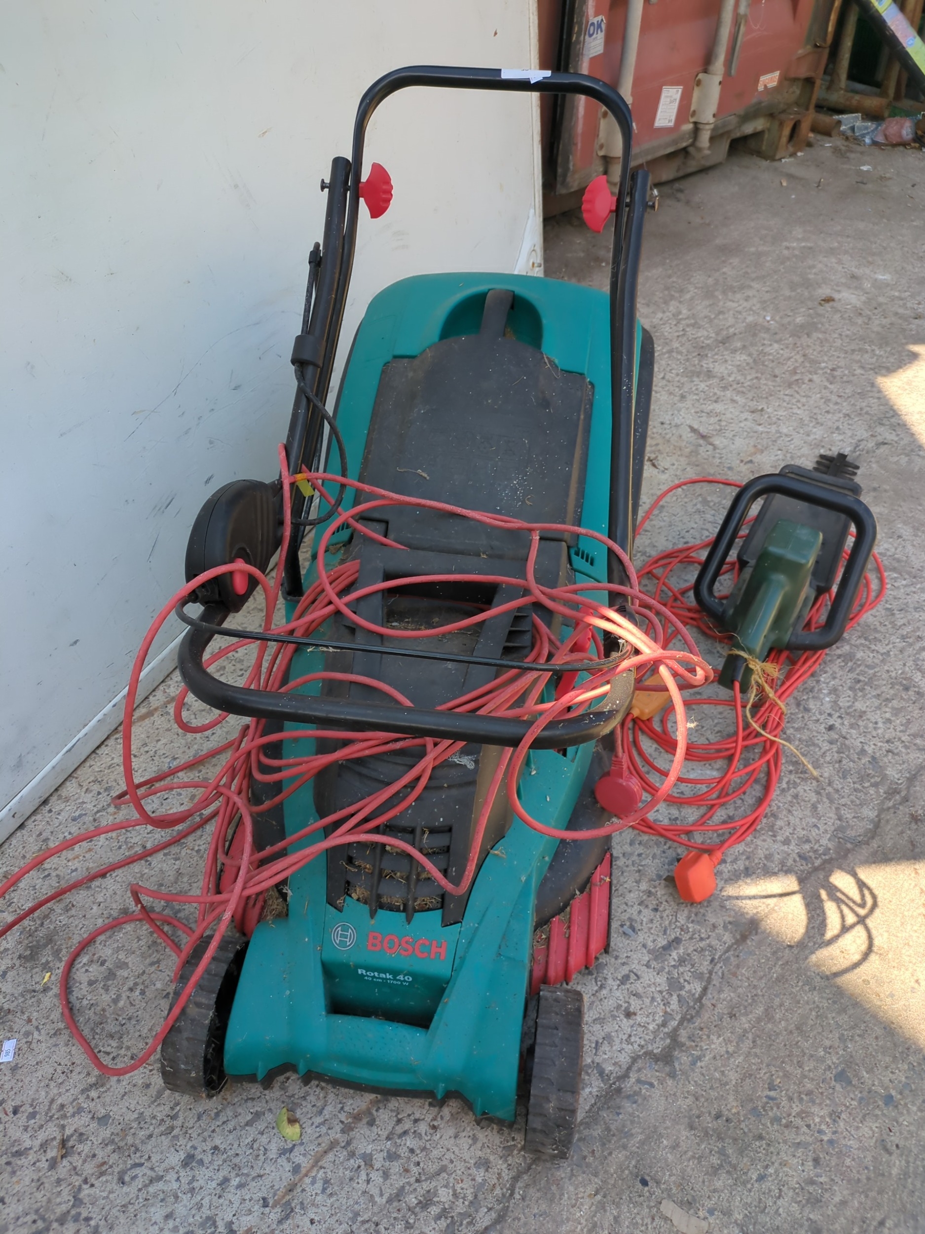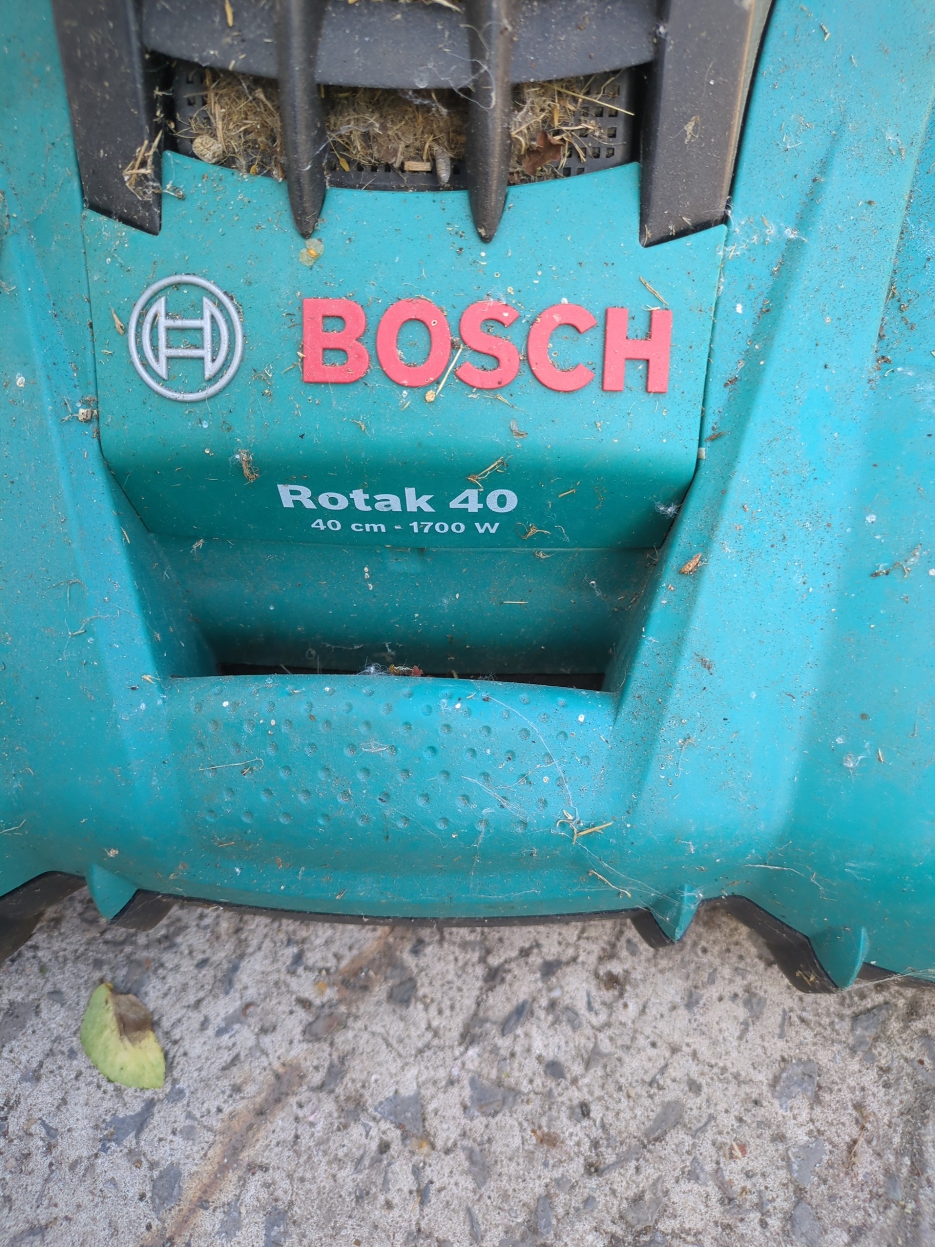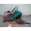 A Bosch corded lawn mower - working