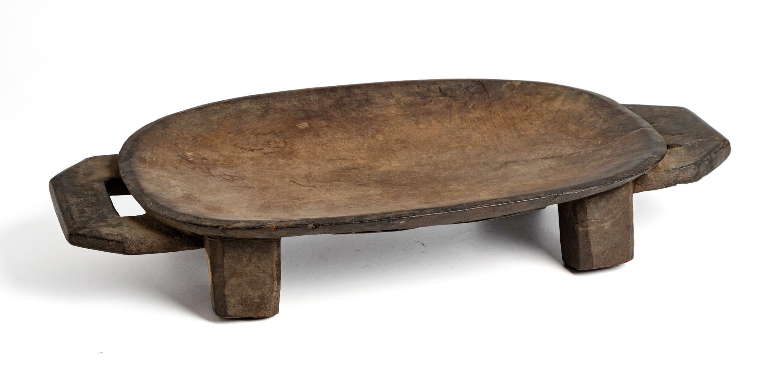 The platter with opposing handles, on square-section feet