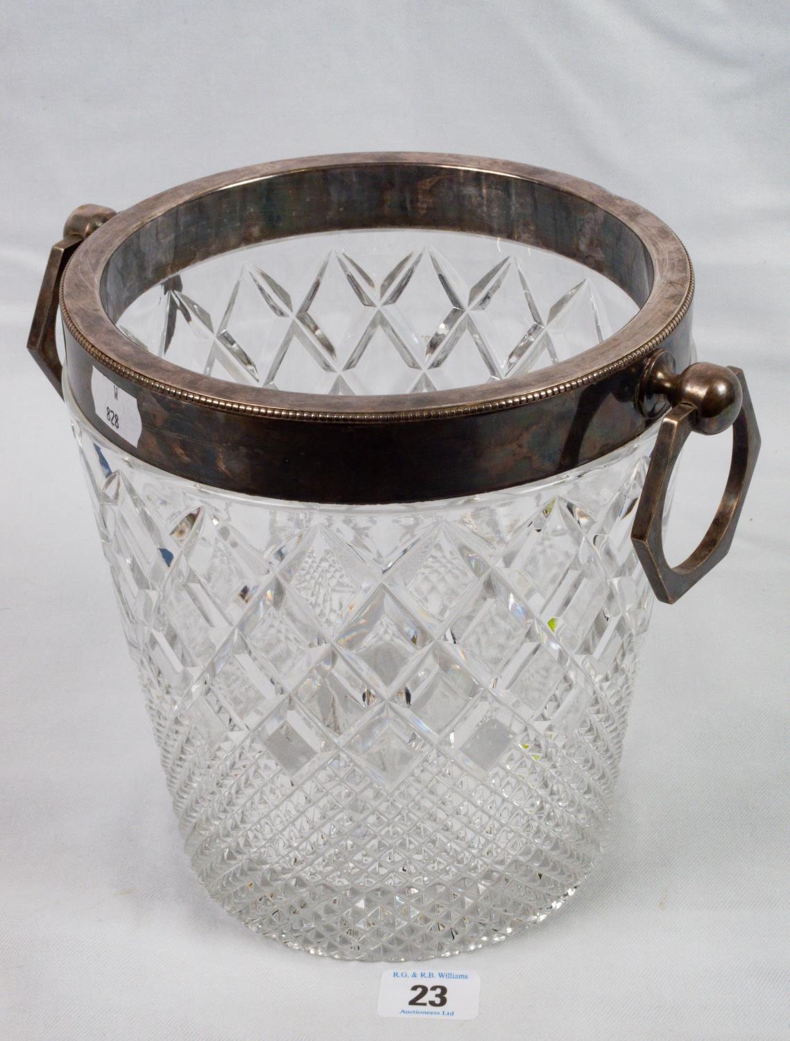 CRYSTAL ICE BUCKET WITH SILVER PLATED RIM