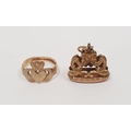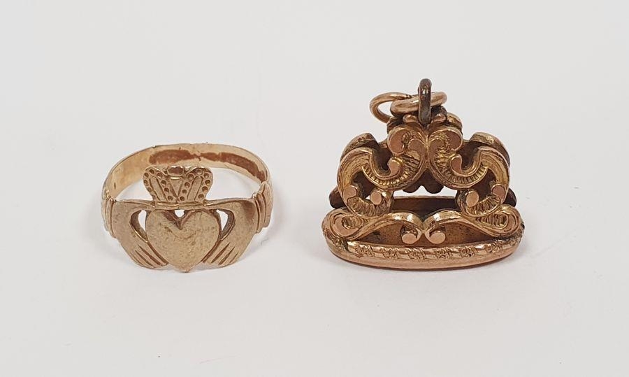 9ct gold sweetheart ring, 2g approx. and a gold-coloured antique seal (2)