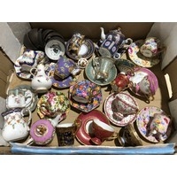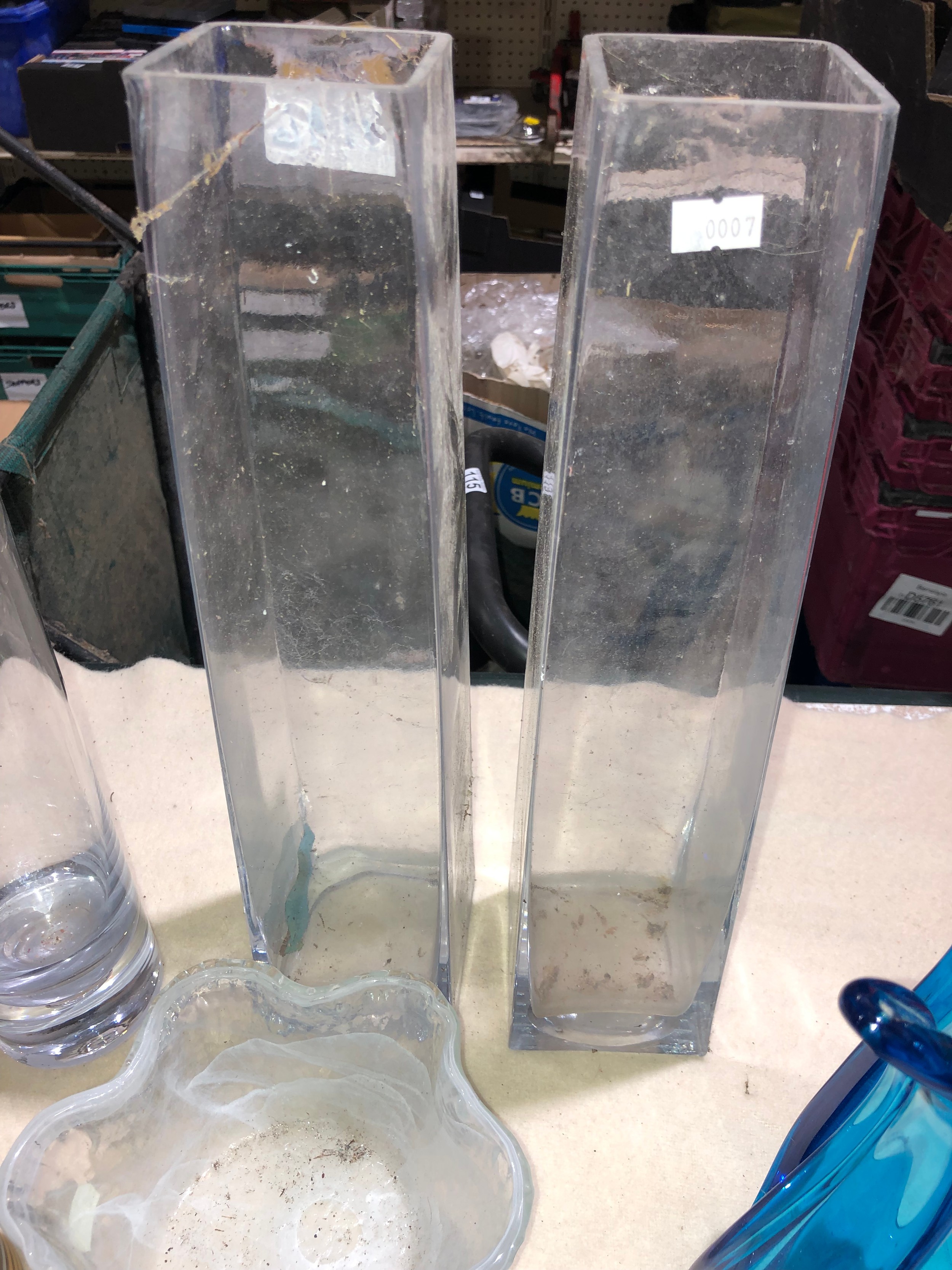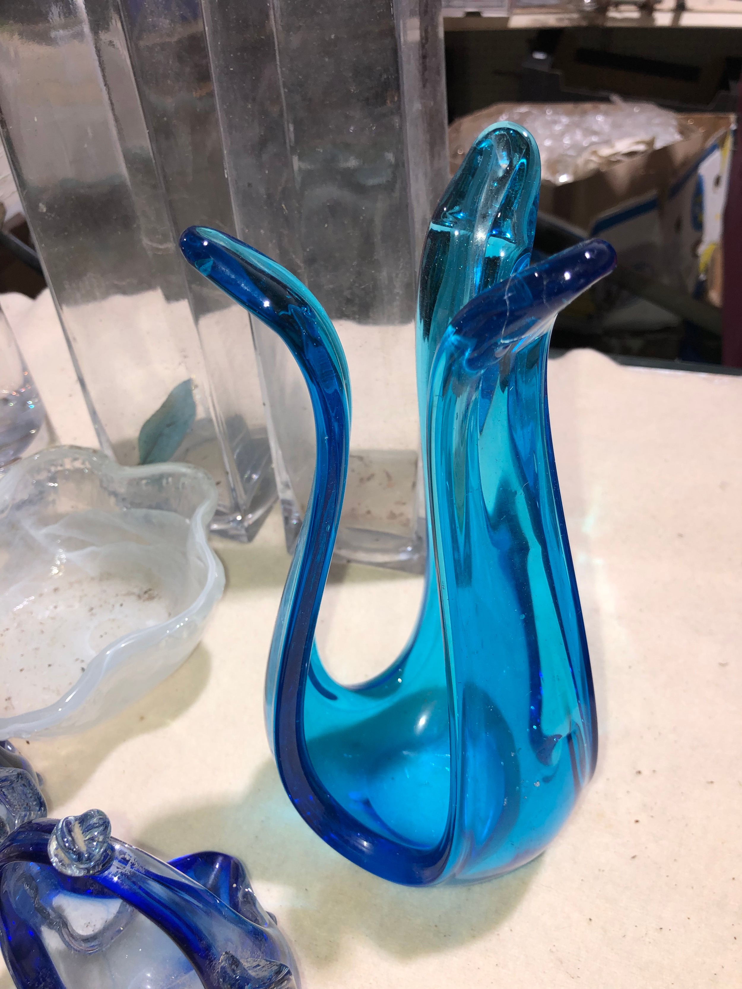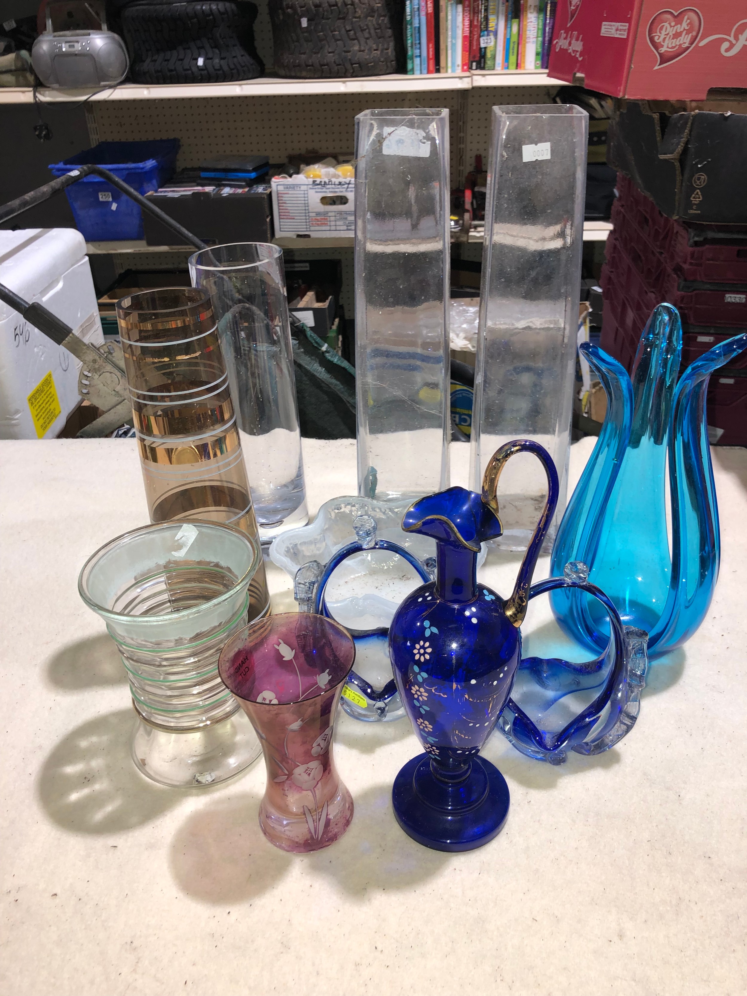 Fruit box containing coloured and clear glassware
