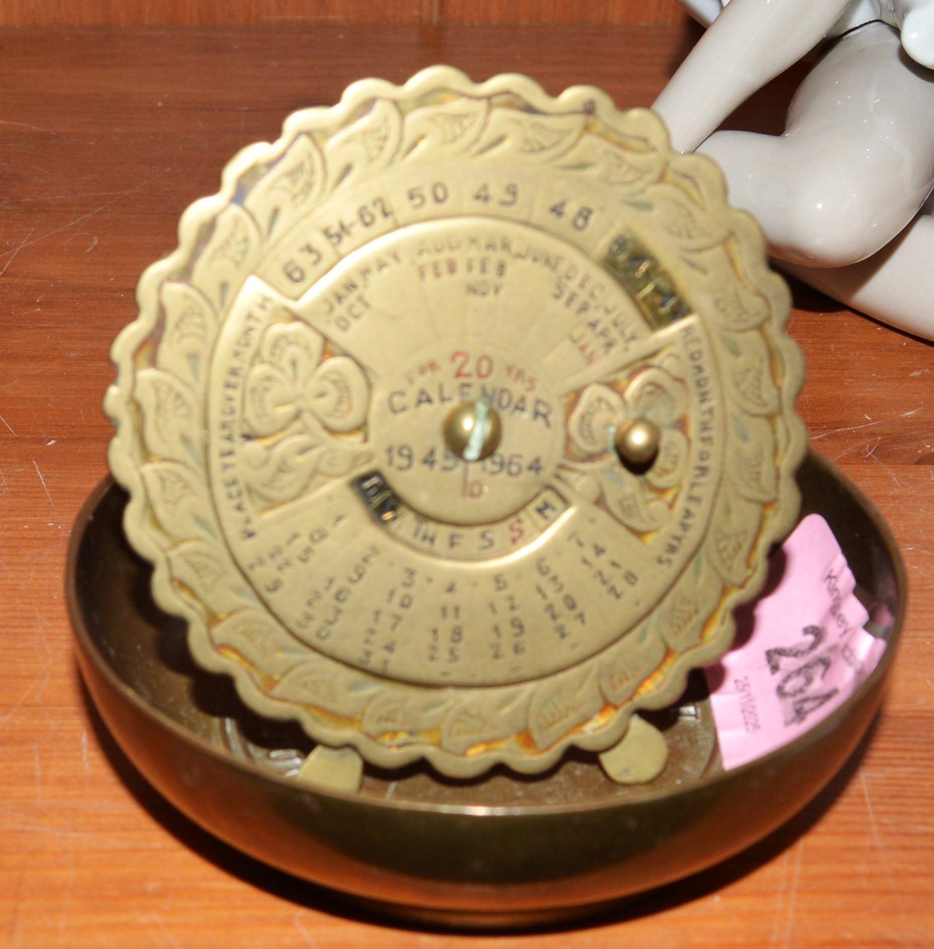 A Solid Brass Twenty Year Desk Top Calendar (1945-1964) PWSA Soud Brass Elizabeth II 1953 Coronation Pin Dish/Ashtray