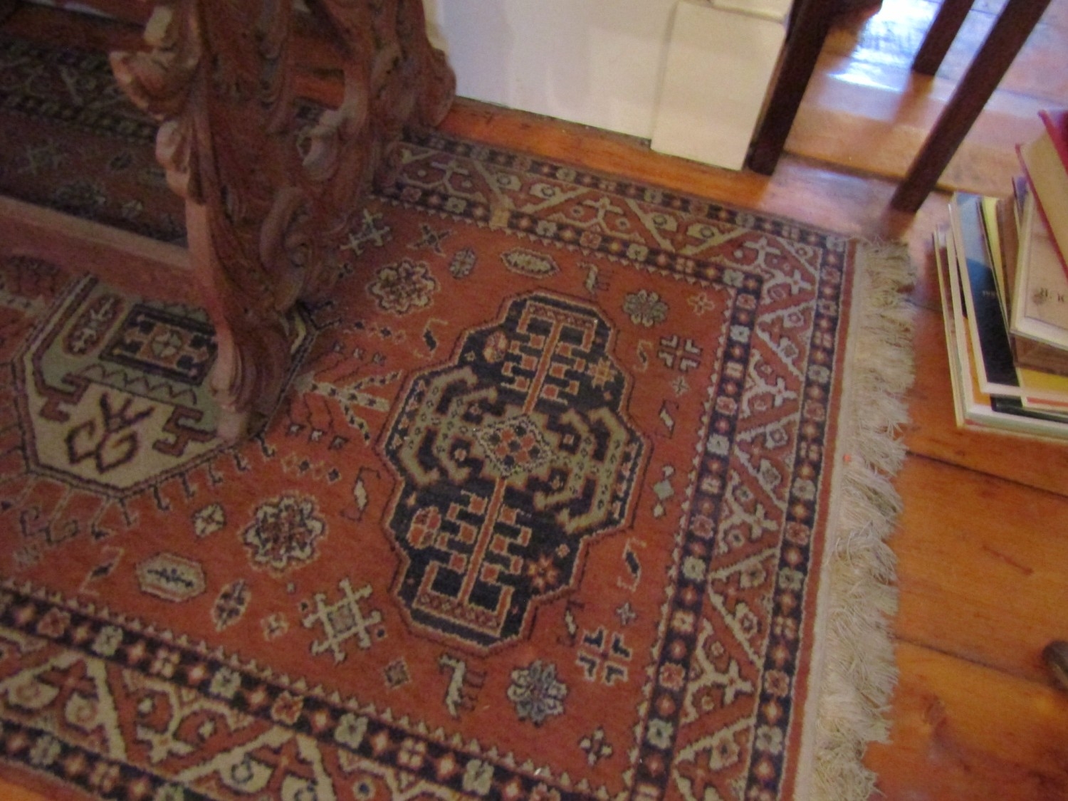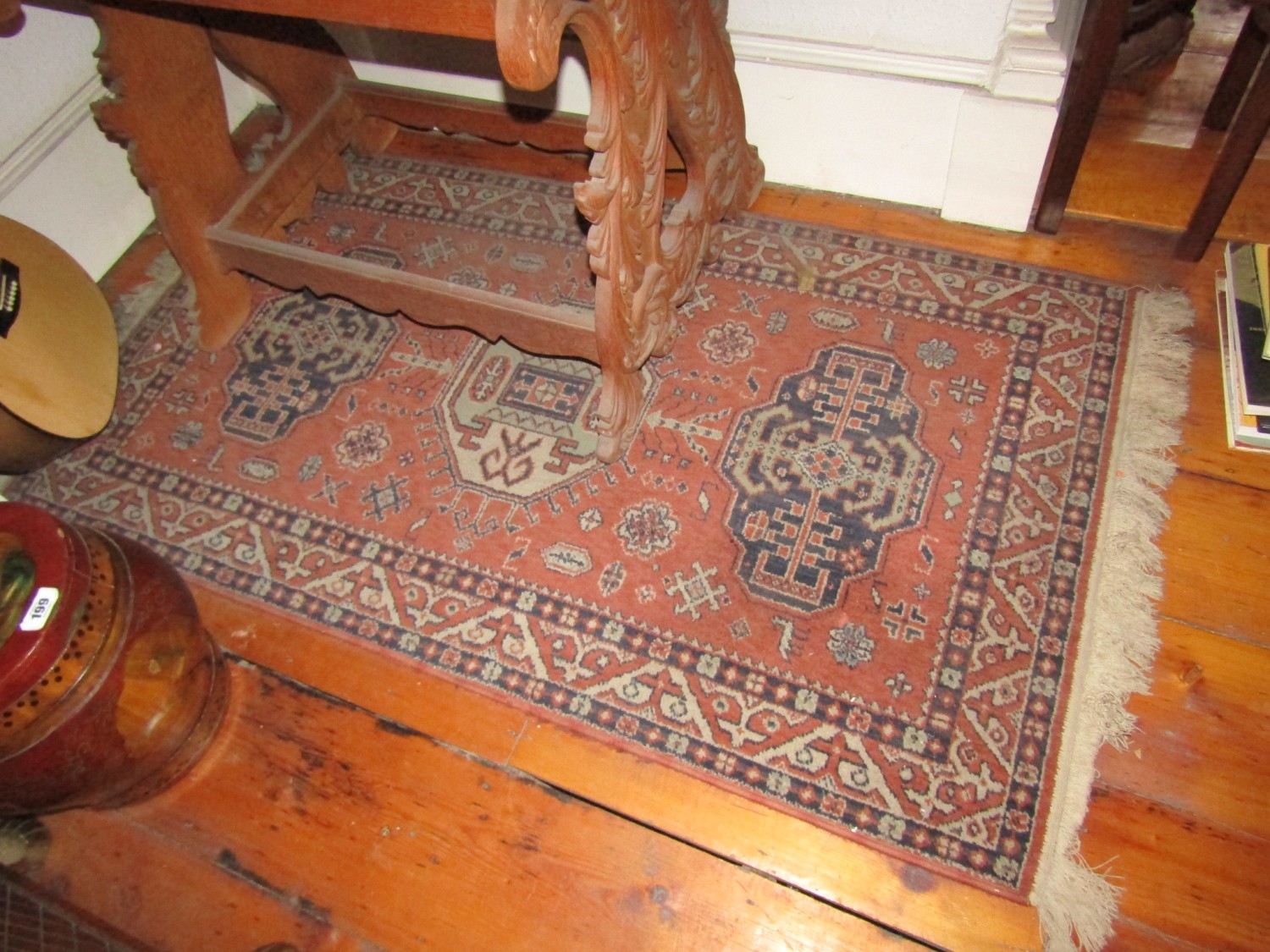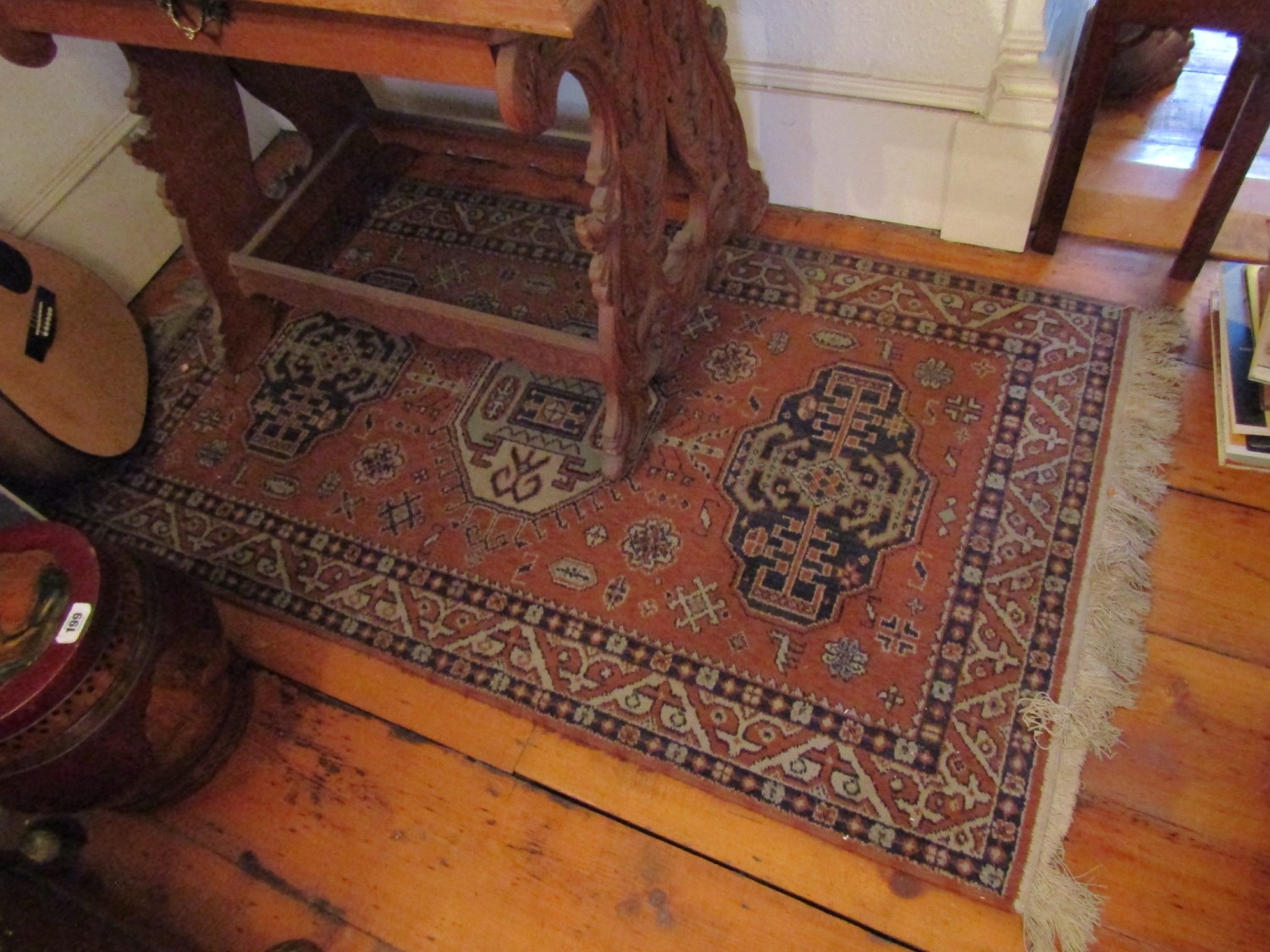 Pure Wool Rug Ochre Ground with Patterned Borders Approximately 4ft 6 Inches Long x 2ft 6 Inches Wide
