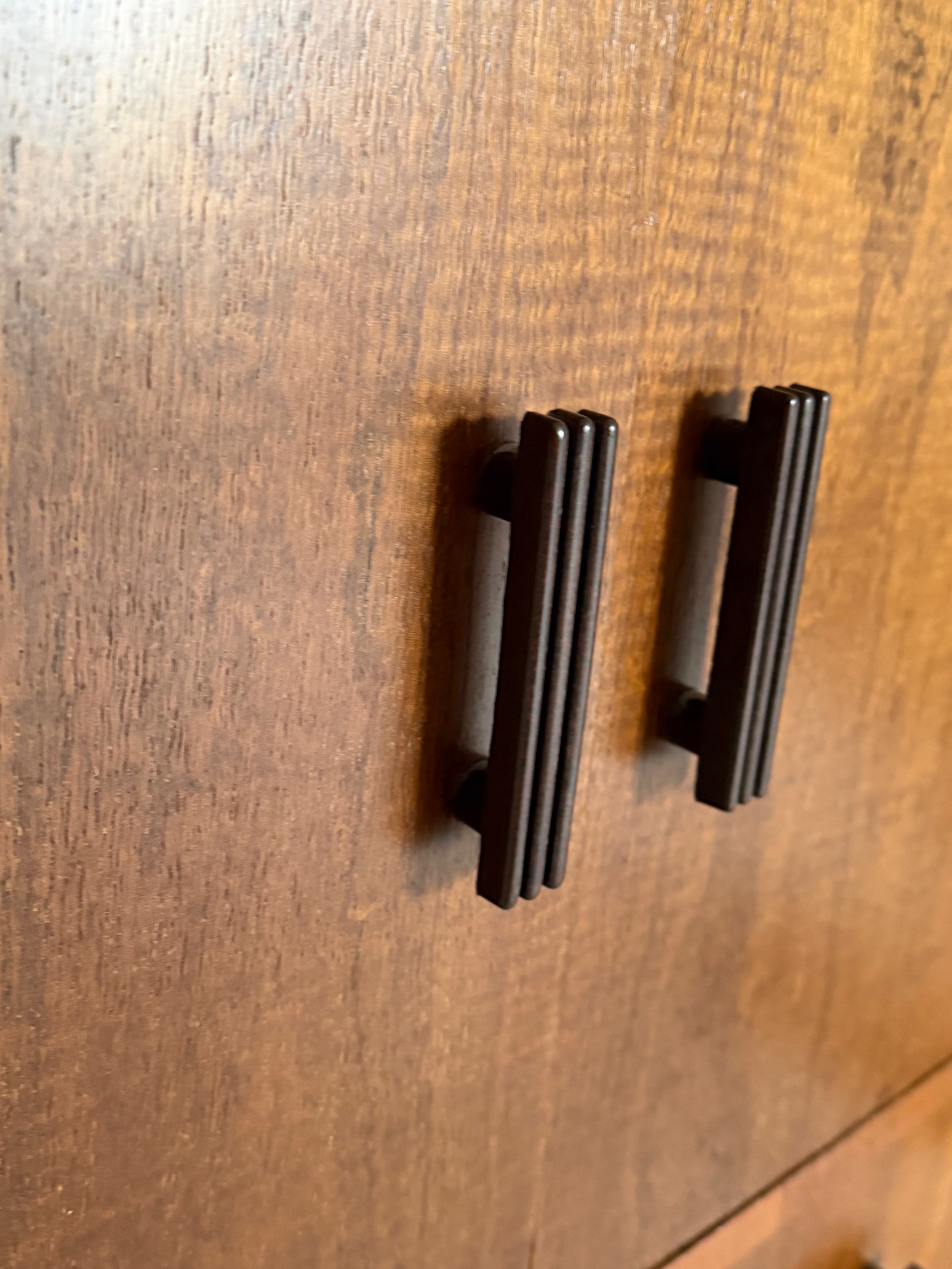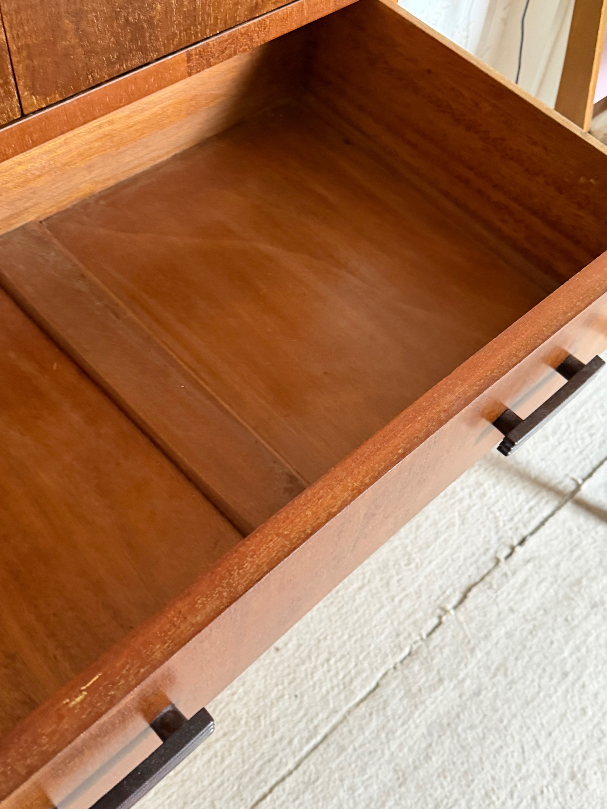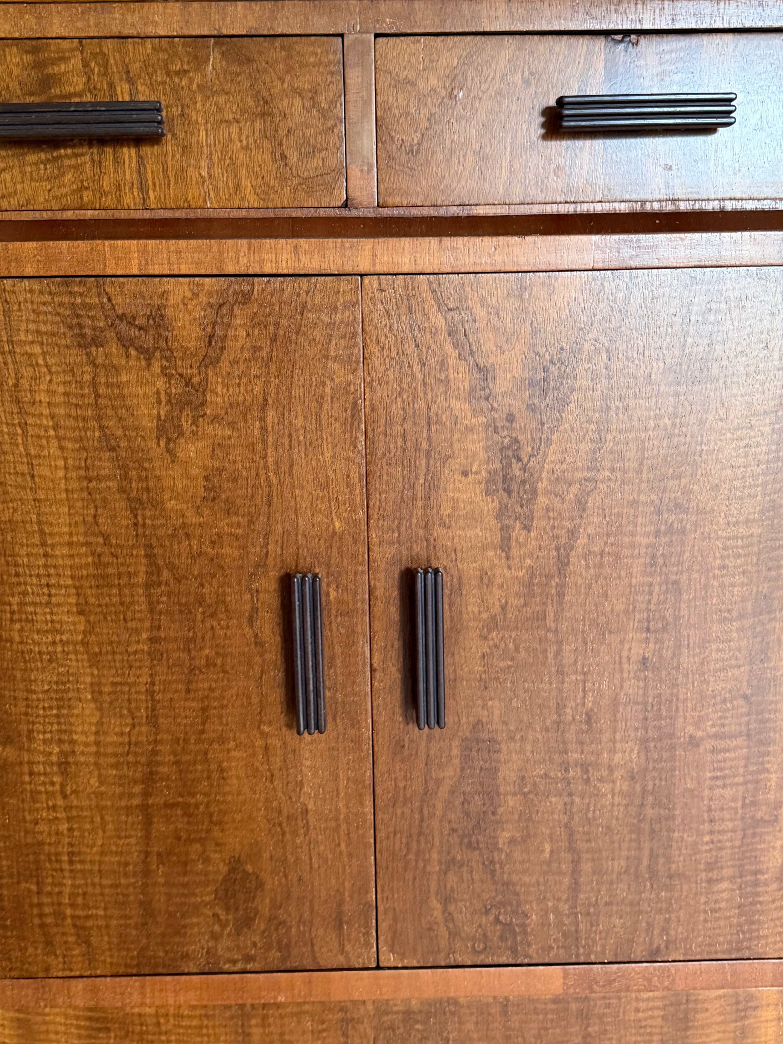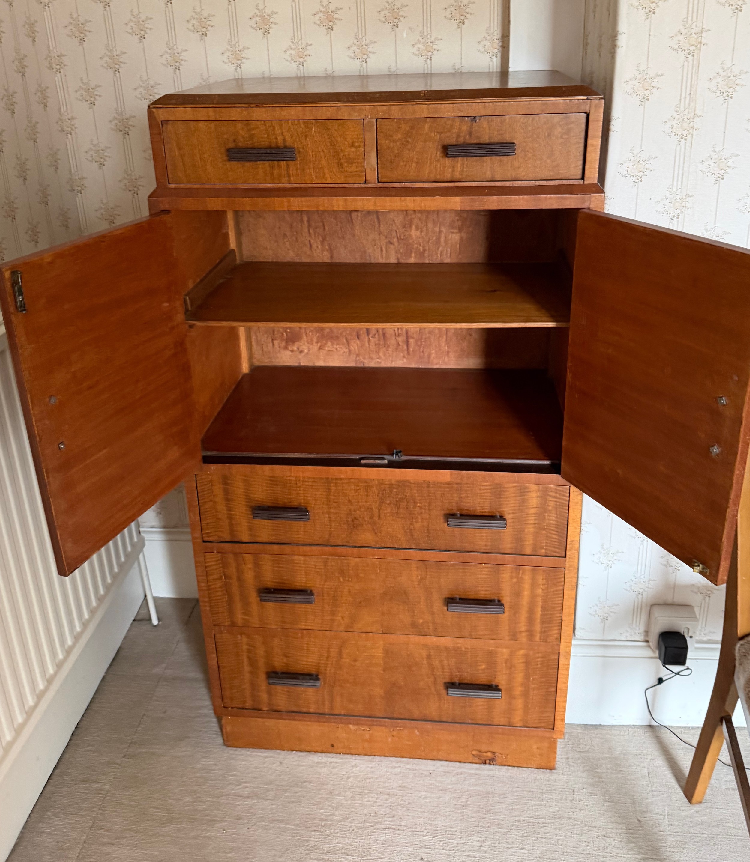 Furniture, an Art Deco storage unit with bakelite handles, 73 cm x 45cm x 137 cm tall.This lot is collection only