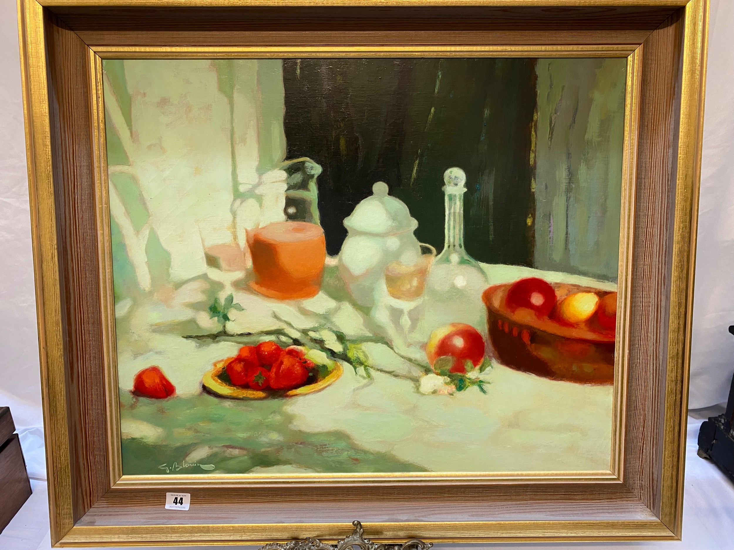 Georges Blouin. Oils on canvas - Nature Moate Aux Fraises, framed - 20 1/2in x 25in.