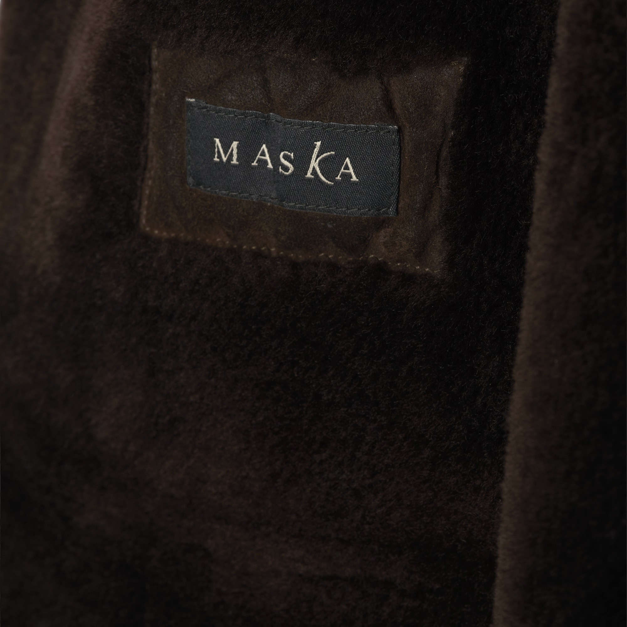 Maska, a ladies brown shearling coat, short lapel collar, button fastenings and two outer pockets, labelled Maska, size UK 12