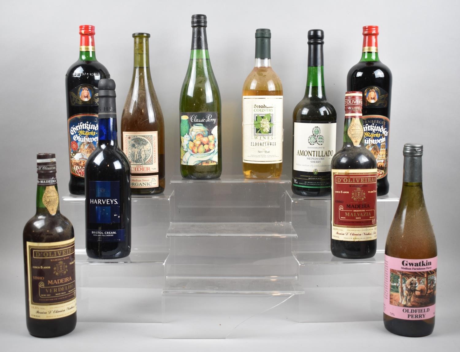 A Collection of Ten Bottles to include Madeira, Perry, Sherry Etc