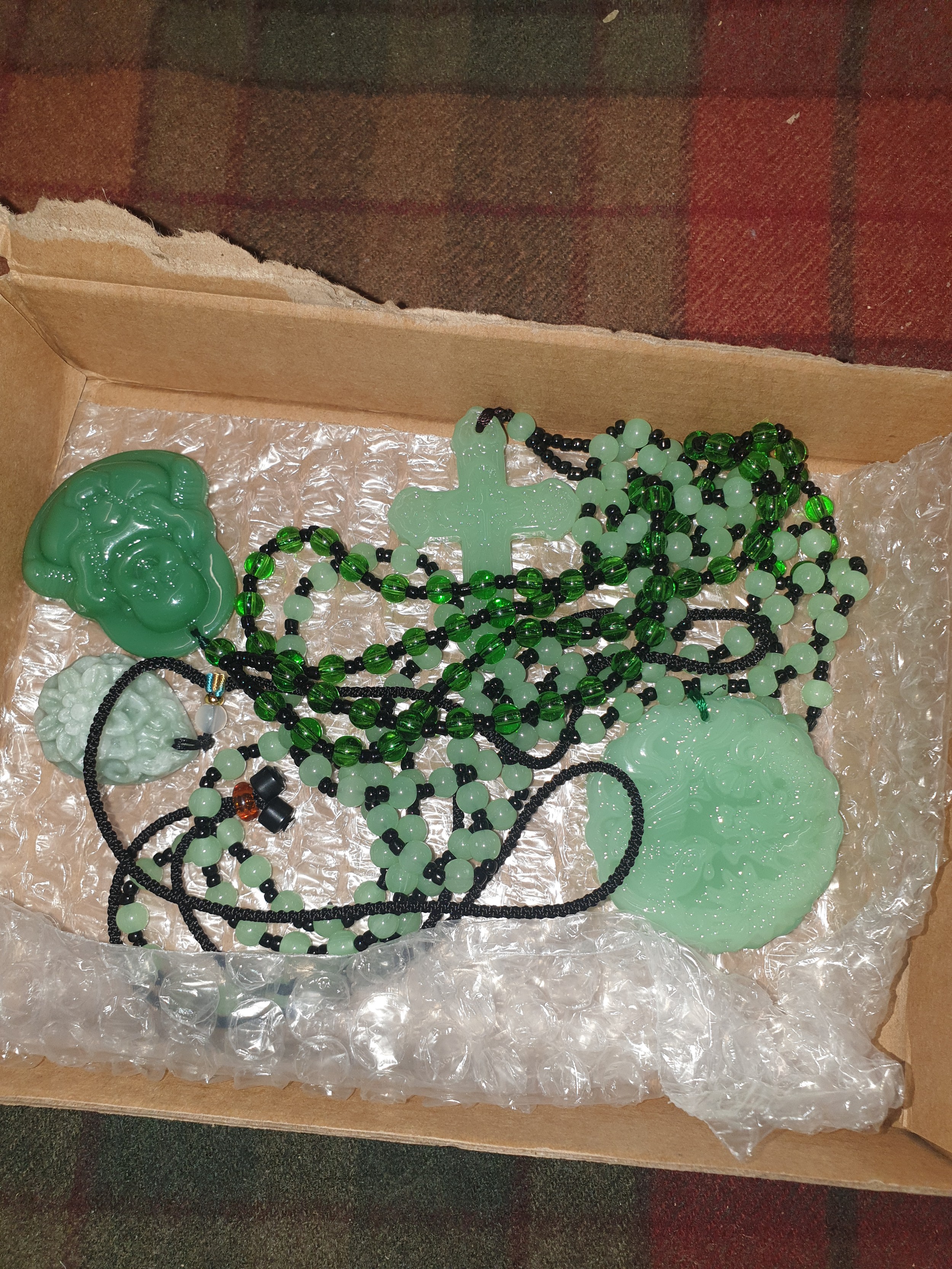 Collection of Five Chinese Amulets on Beaded necklaces.