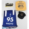 Collection of Ryder Cup Related Items (4) 1993 The Belfry Spectators Cushion, '95 Photographer's Bib, Official Merchandise Golf cap and 2001 Ryder Cup Matches Past Players Group Photograph - taken in front of The Club House approx. 40 players to incl Bernard Hunt, Max Faulkner, Neil Coles, Tony Jacklin, Bernard Gallacher, Tommy Horton, Peter Oosterhuis, Christy O'Connor, Eamon D'Arcy, Peter Allis, Peter Baker, Ken Brown, Brian Barnes, to name just a few - mounted and ready for framing - overall 12" x 14" Note: From The Estate of The Late Tommy Horton MBE, Former Ryder Cup Player and PGA Captain