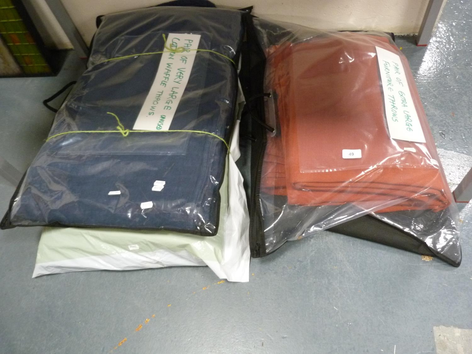 Collection of large waffle throws, other throws etc.