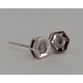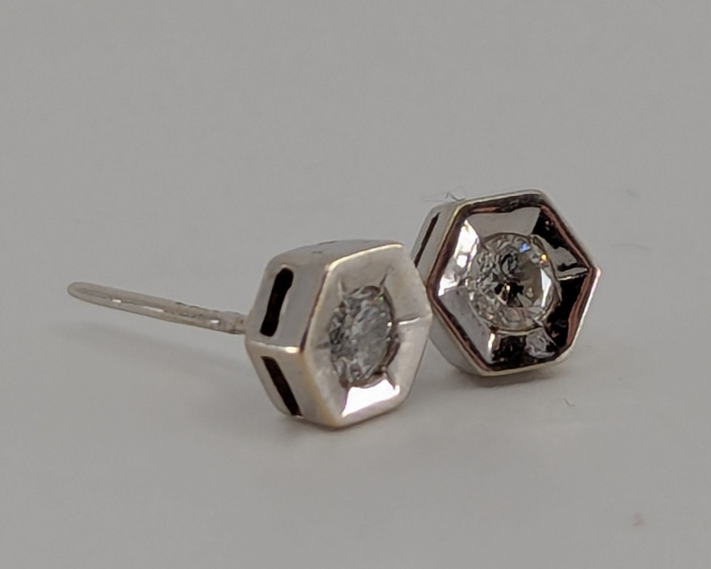 A pair of diamond stud earrings, round brilliant cut diamonds each 0.12ct, mounted within 18ct white gold hexagonal settings, stamped K18 0125, RG, 750, London 1998, 1.4 g gross (no butterflies)