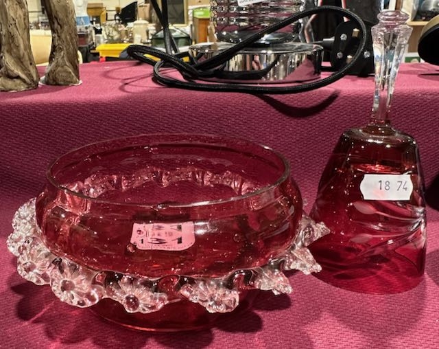 Pair of Vintage Cranberry Glass Pieces (Bowl Slight Chip/Crack)