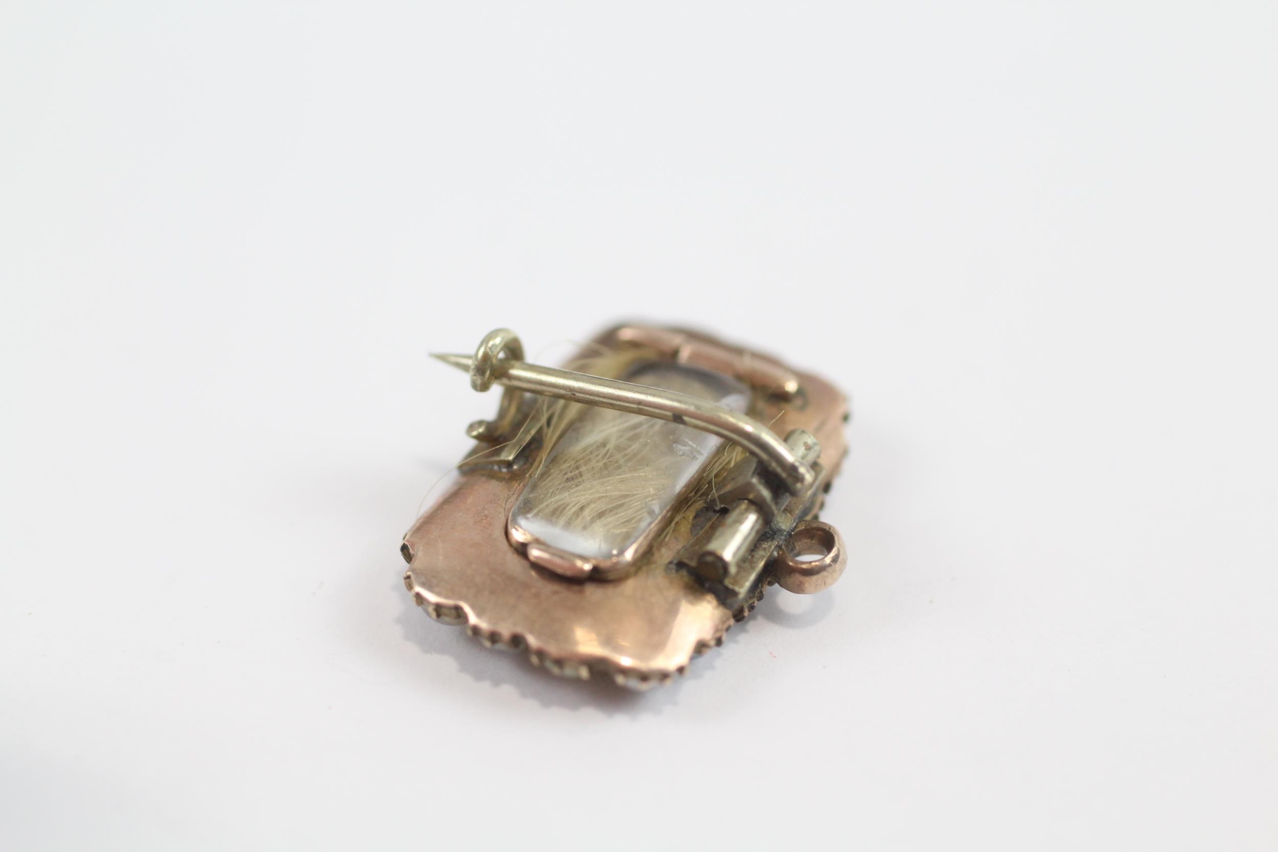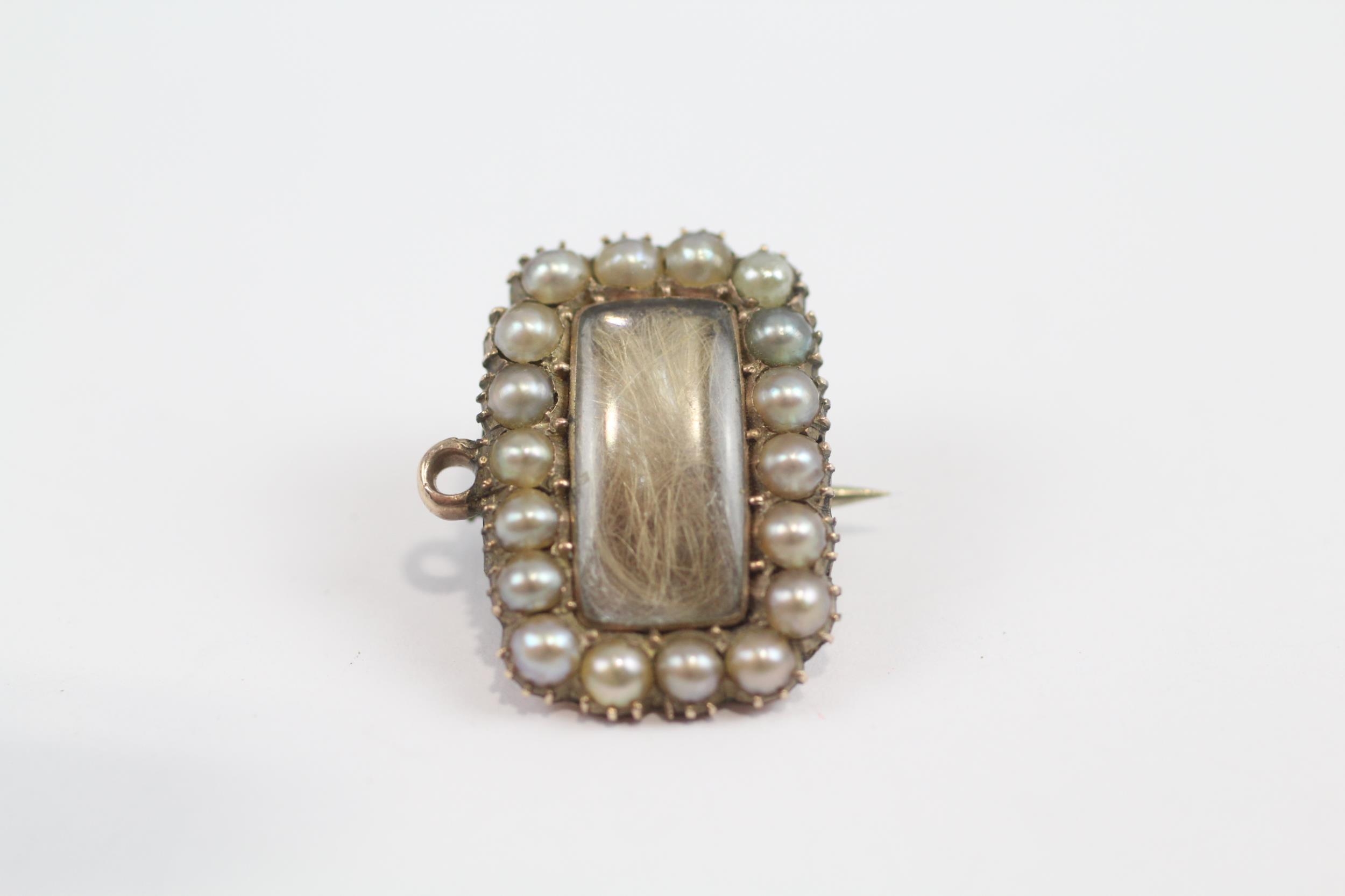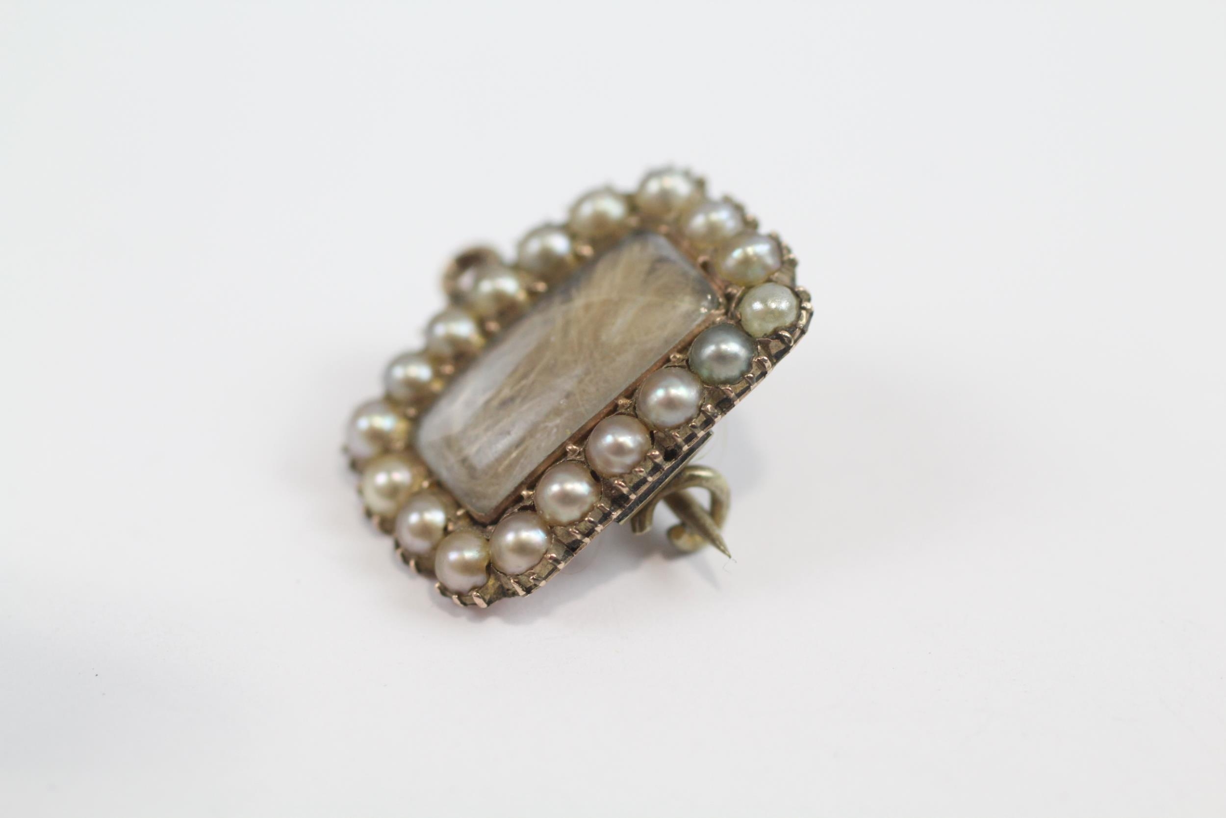 8ct Gold Antique Split Pearl Mourning Brooch With Hairwork Panel & Base Metal Pin (4.2g)