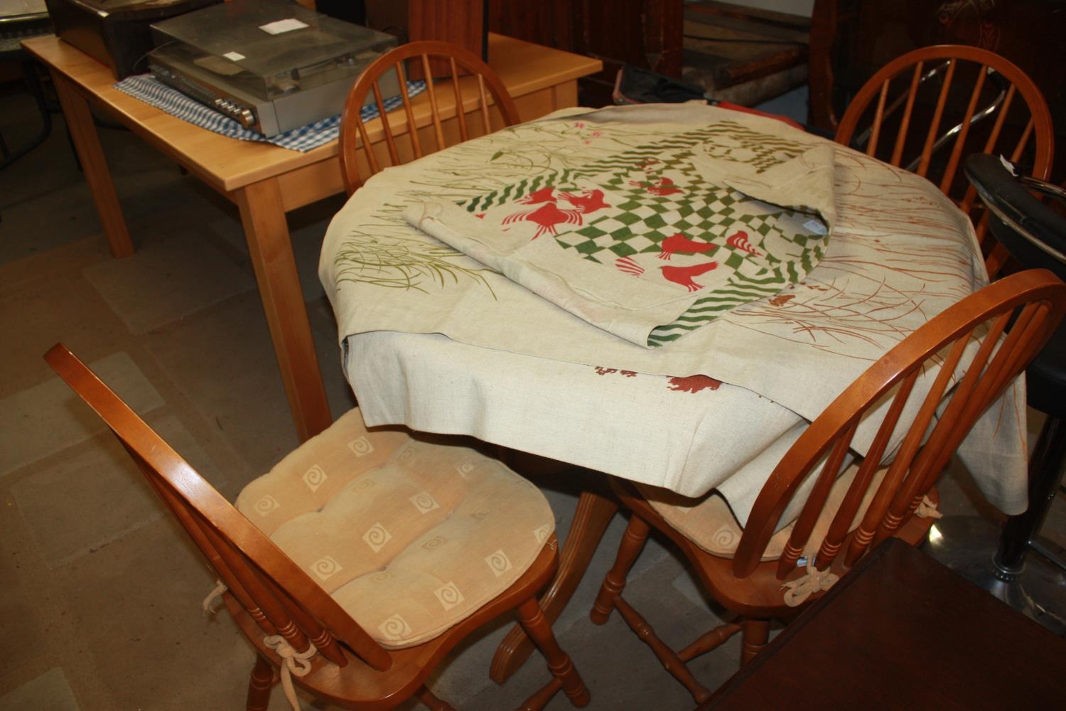 Single Pedestal Circular Table and Four Hoop-Back Chairs
