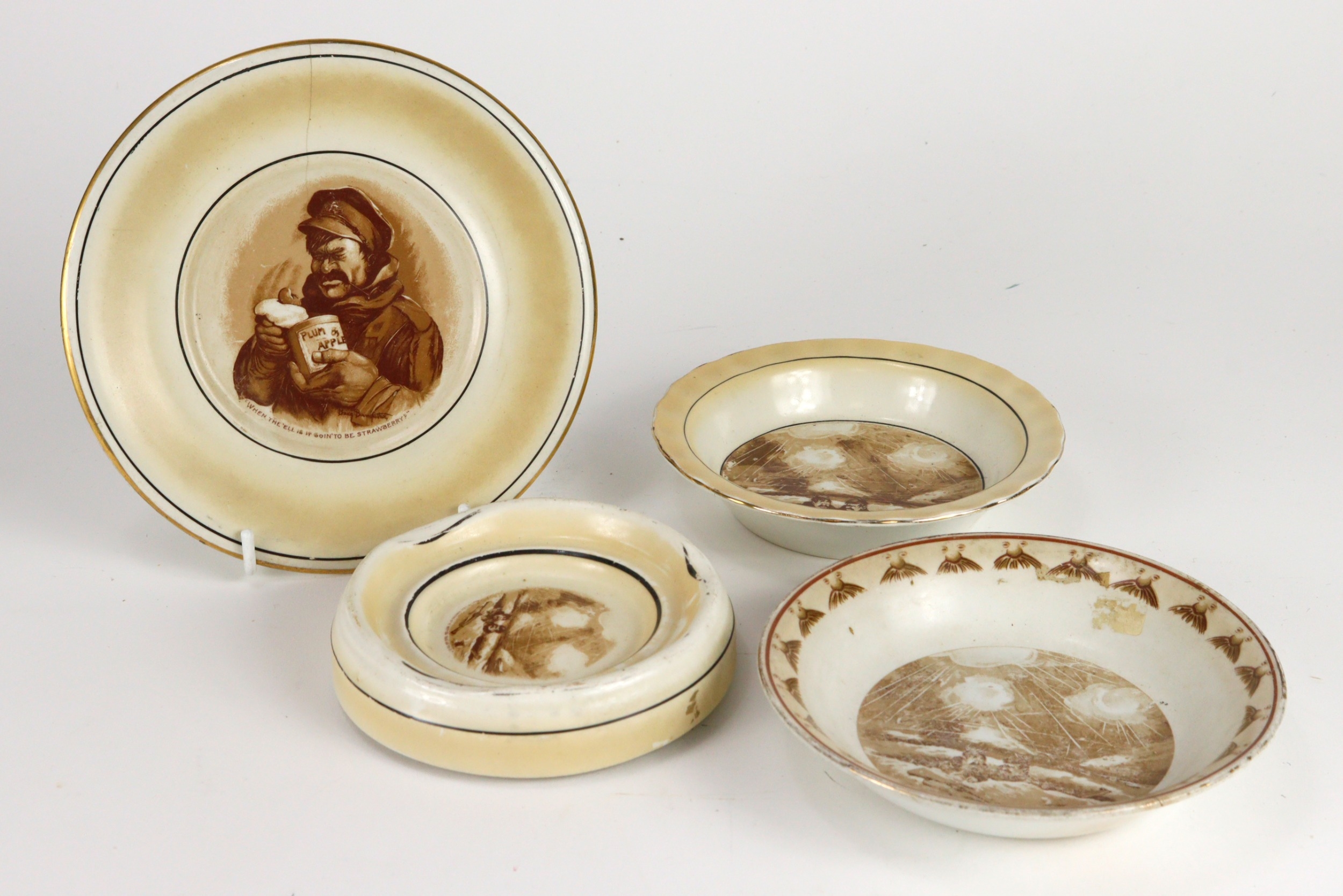Bruce Bairnsfather 'old bill' commemorative ash tray, small bowls and plate (4) a/f