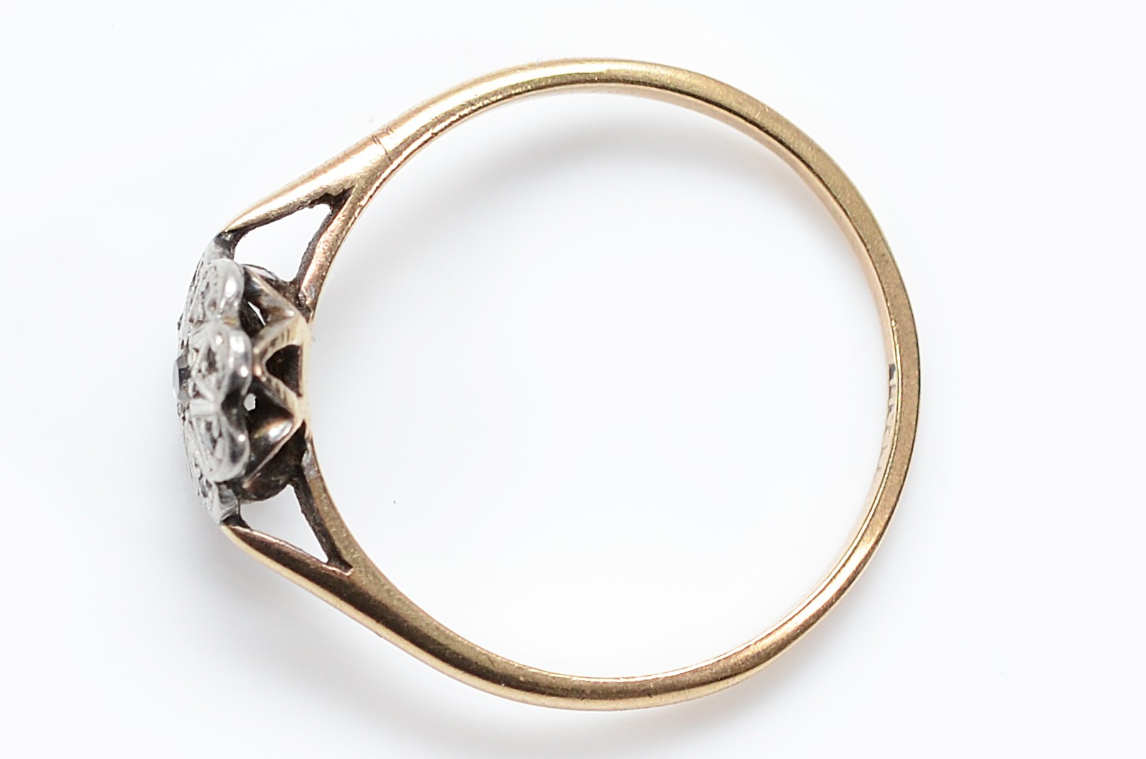 An Edwardian gold and diamond floral ring, hallmarks worn, O, 1.4g