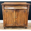 A George lV rosewood Chiffonier, later converted to a media unit, slight oversailing top above large single drawer, two carved cupboard doors, turned feet, 94cm high, 90cm wide, 47.5cm deep