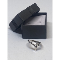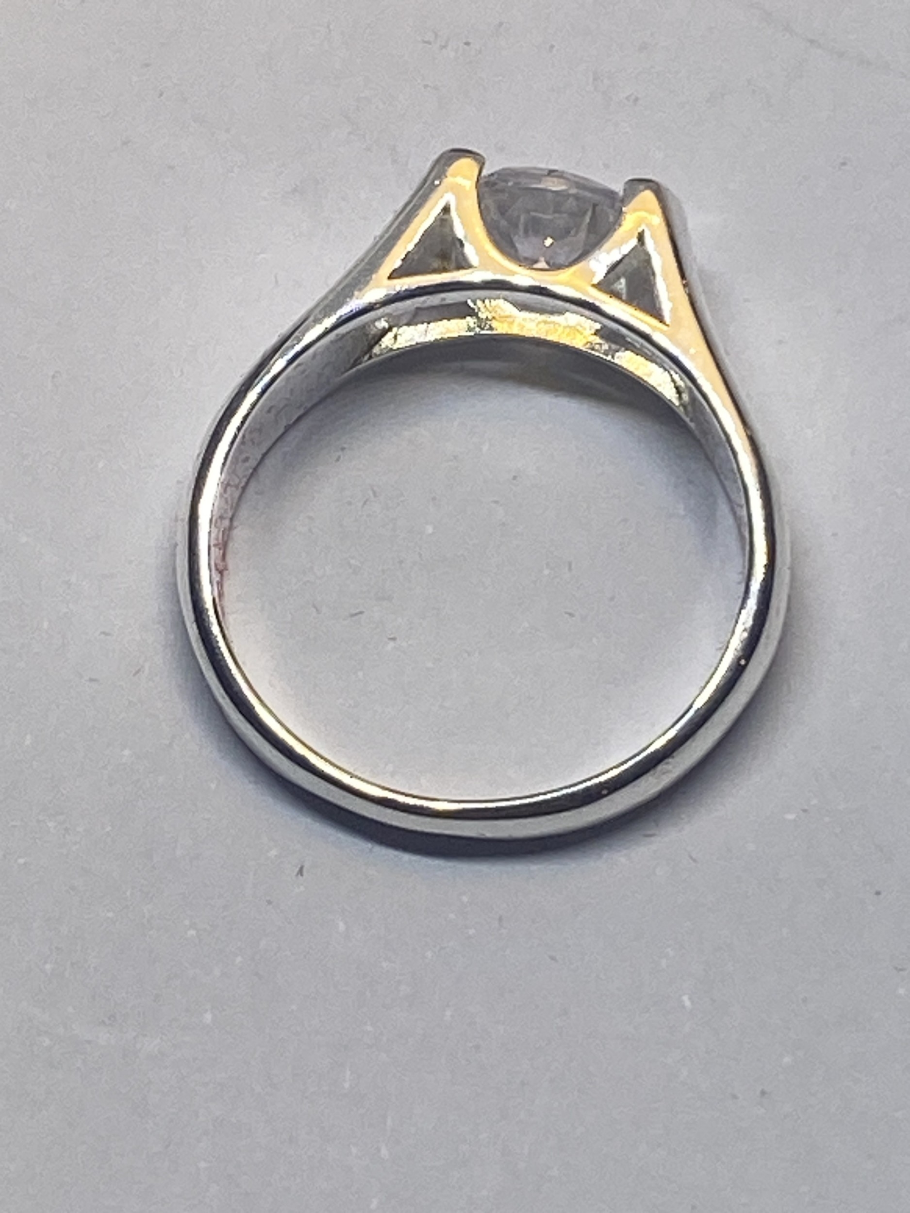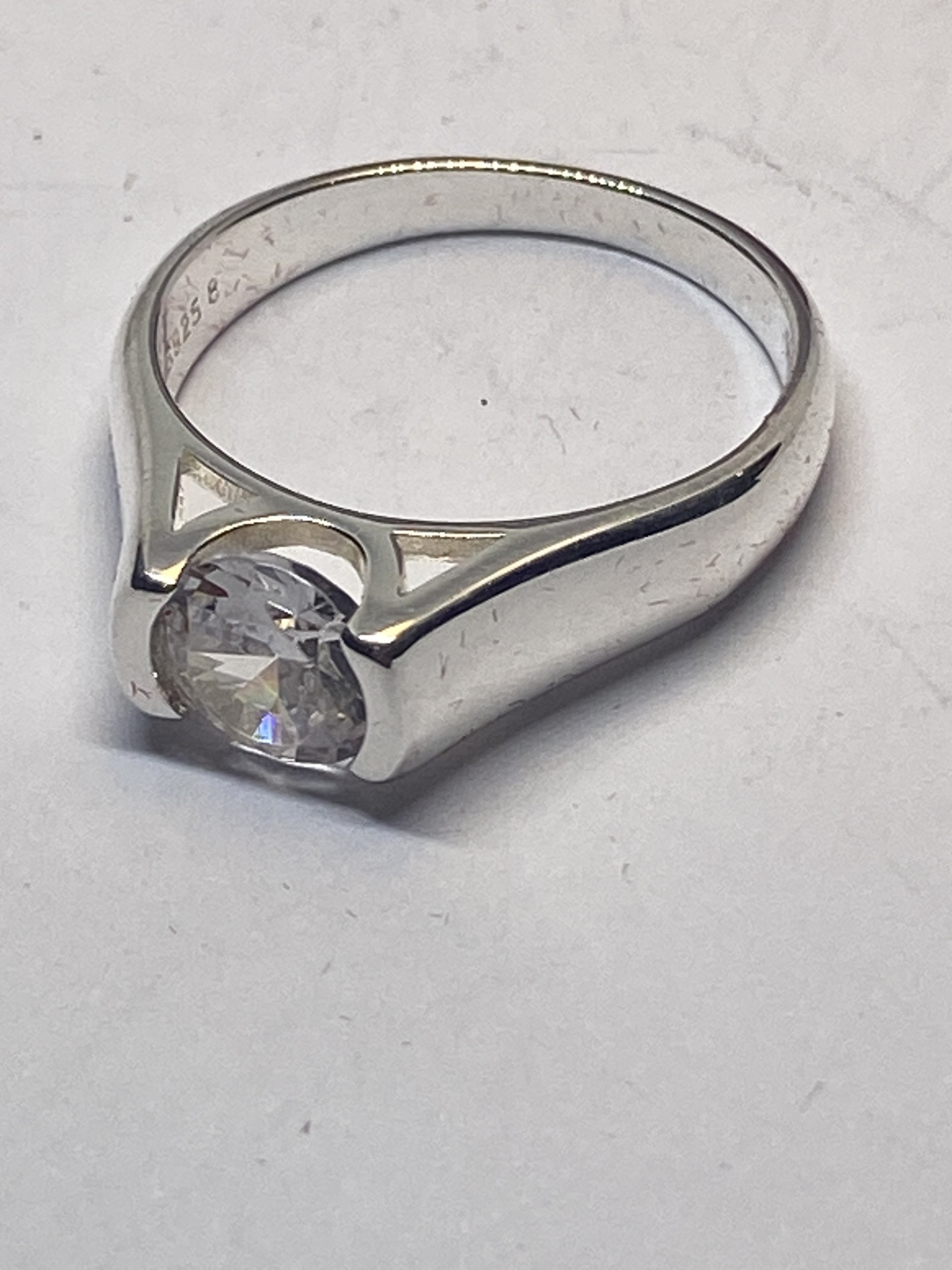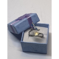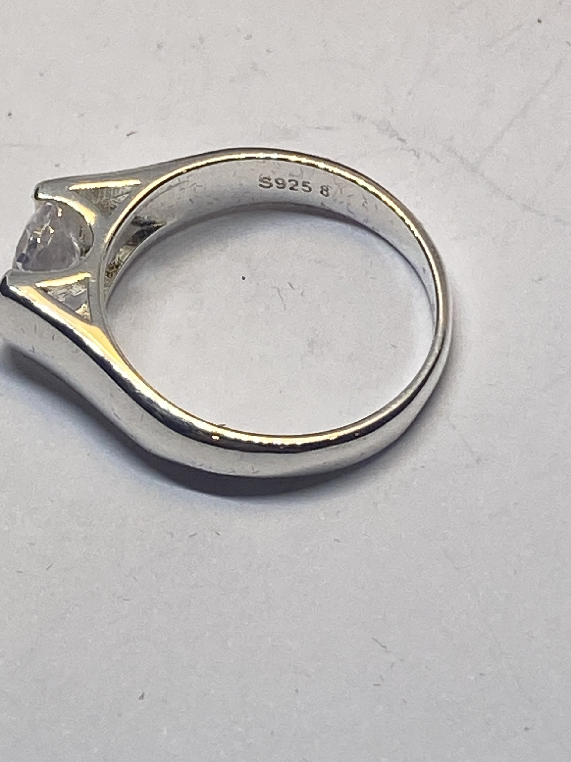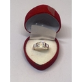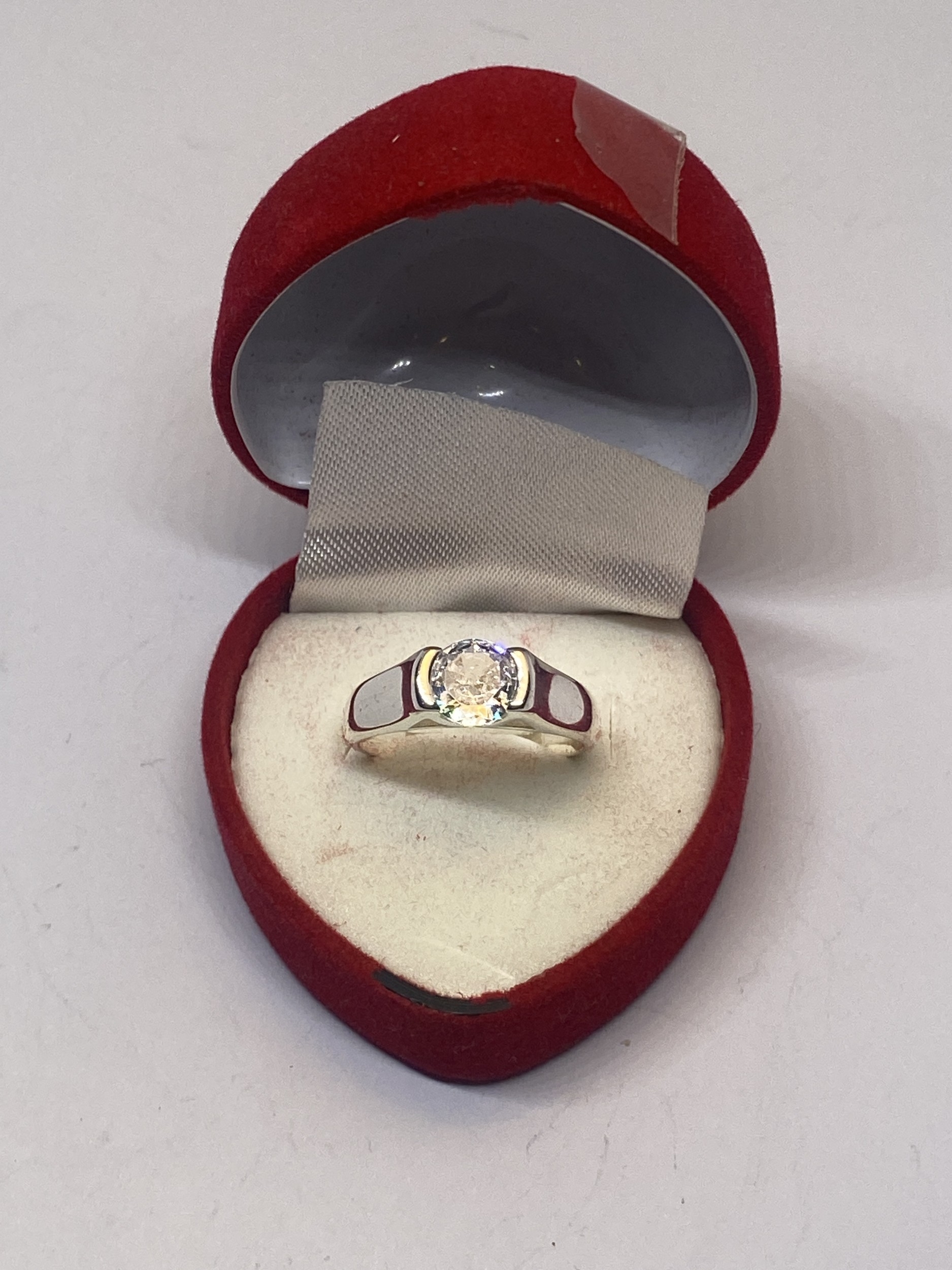 A MARKED 925 CLEAR STONE SOLITAIRE RING IN A HEART SHAPED PRESENTATION BOX
