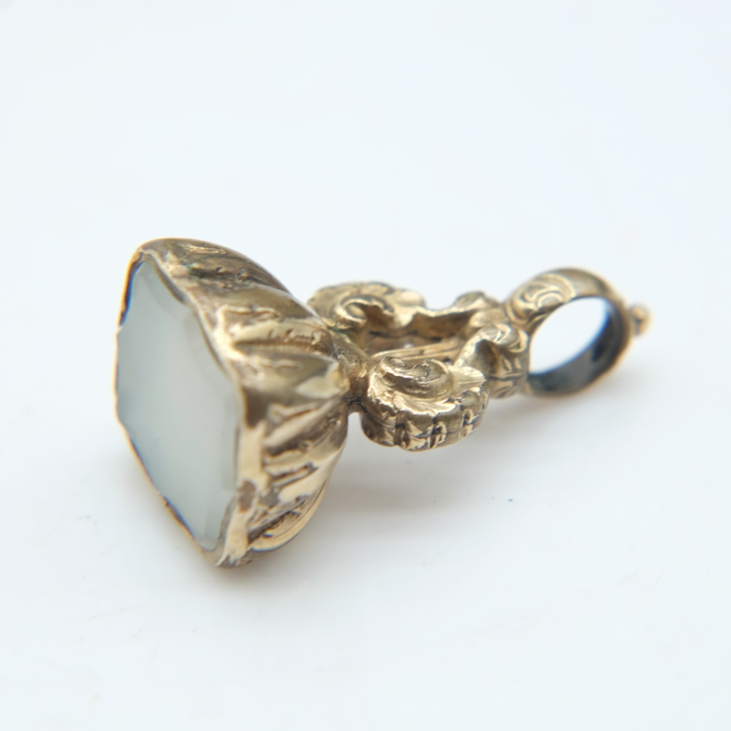Georgian gold cased and chalcedony agate seal pendant, L: 30 mm, 4.0g. UK P&P Group 0 (£7+VAT for the first lot and £1+VAT for subsequent lots)