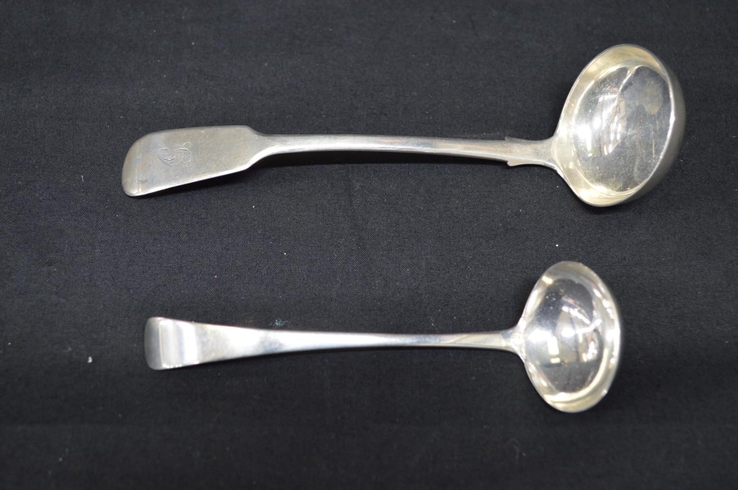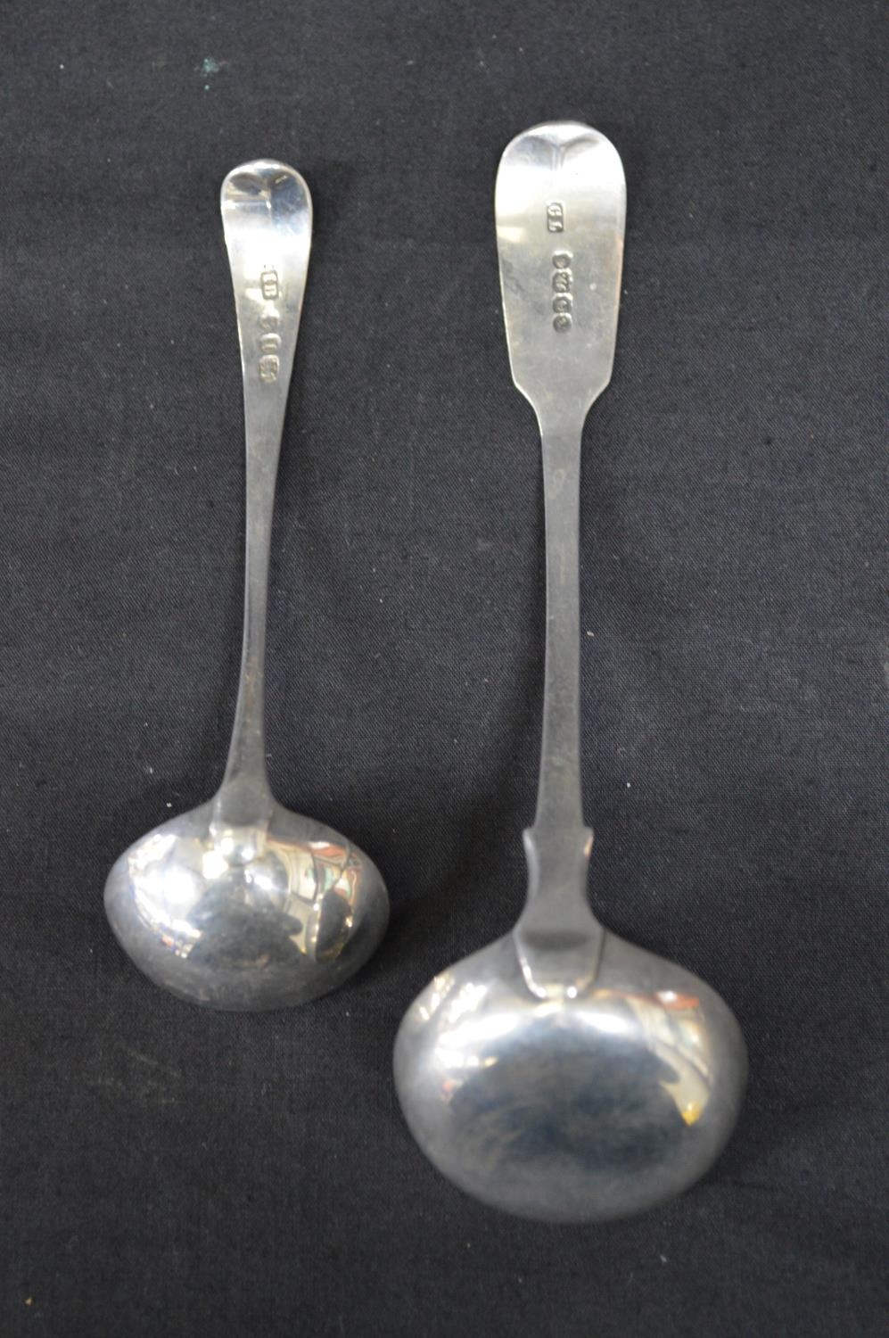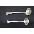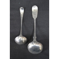 Silver toddy ladle having Fiddle pattern handle and monogram engraving, hallmarked for London 1838 together with one other Georgian silver toddy ladle with Old English pattern handle (1.59ozt)
