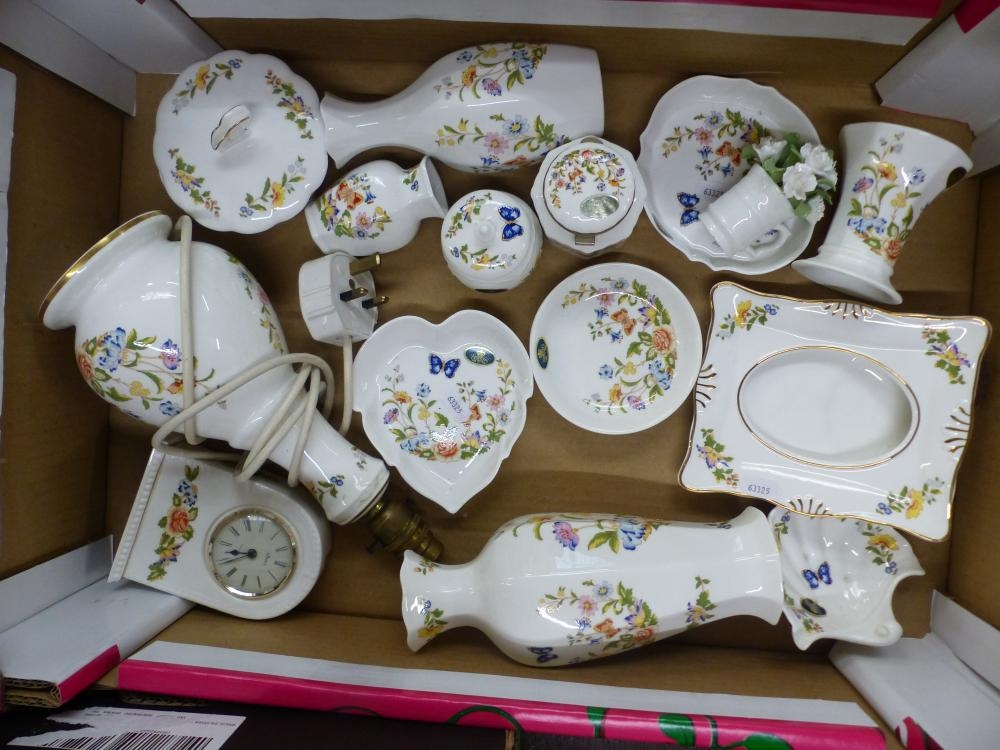 Aynsley Cottage Garden items to include lamp base, shaped dishes, vases both small and large, dishes and lidded pots etc (Approx 15 items in 1 tray)