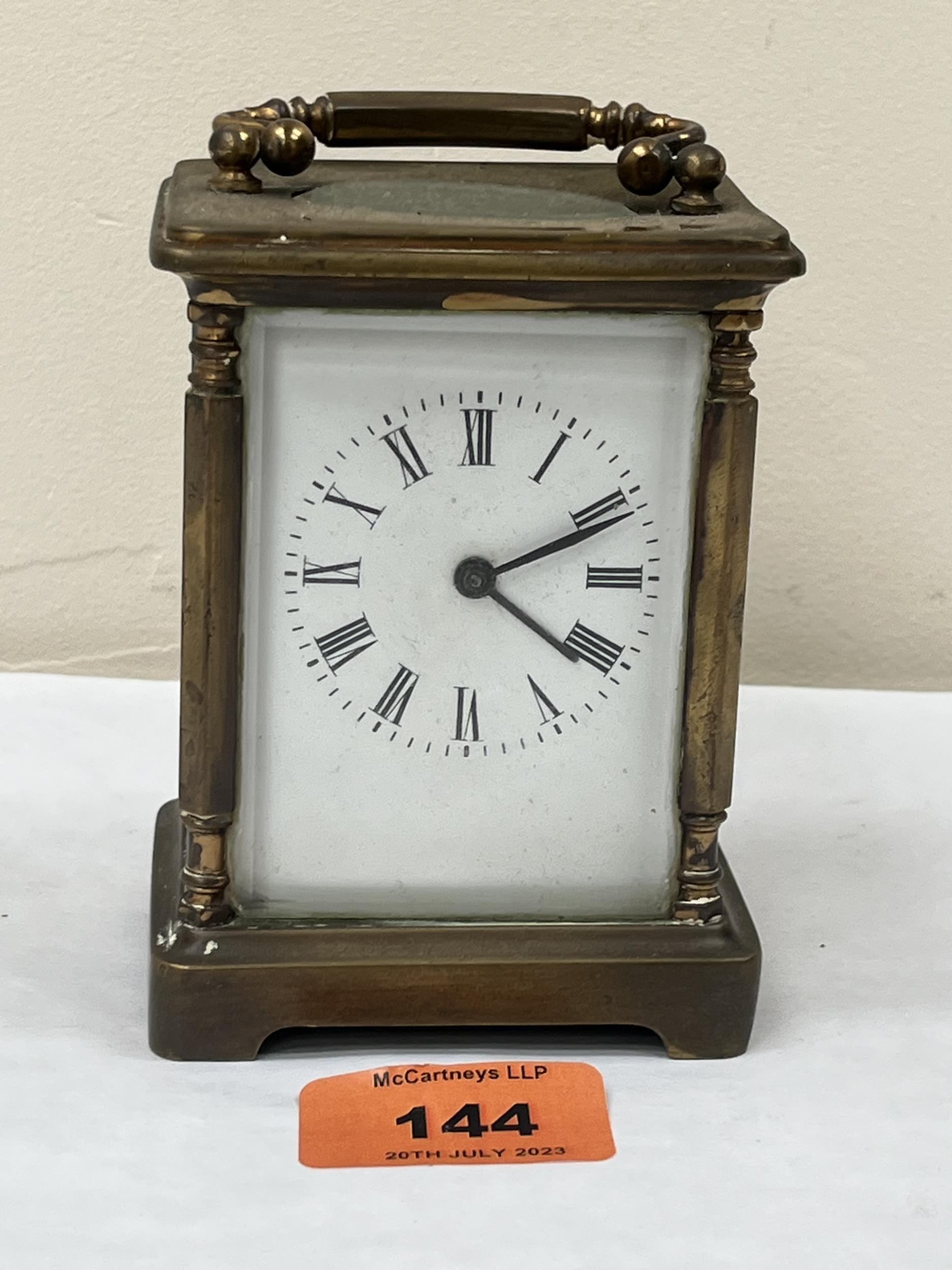 An early 20th century French brass carriage timepiece. 4' high. Movement not running