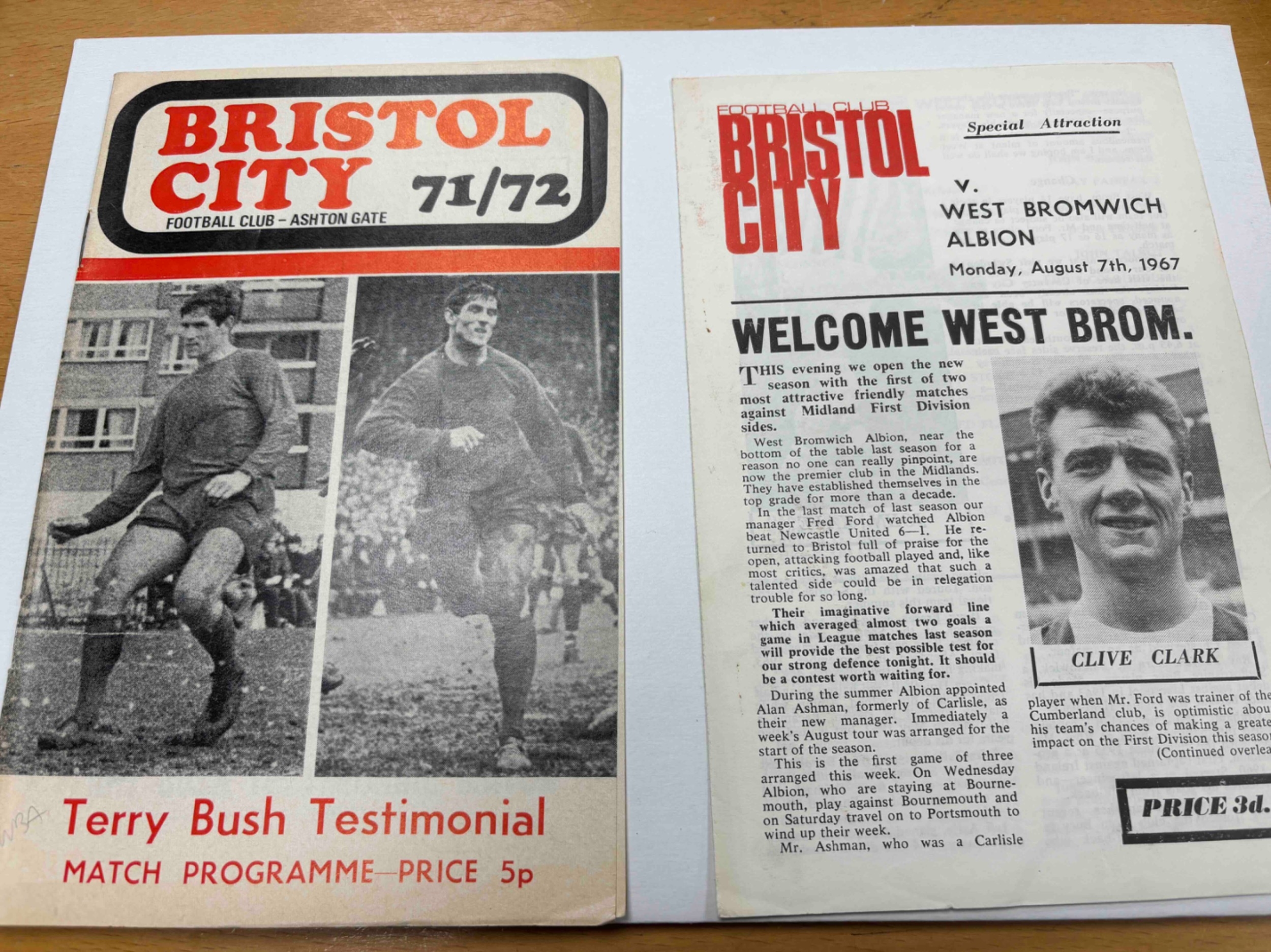 Bristol City v West Brom 1967/8 friendly 4 pages and 1971/2 testimonial