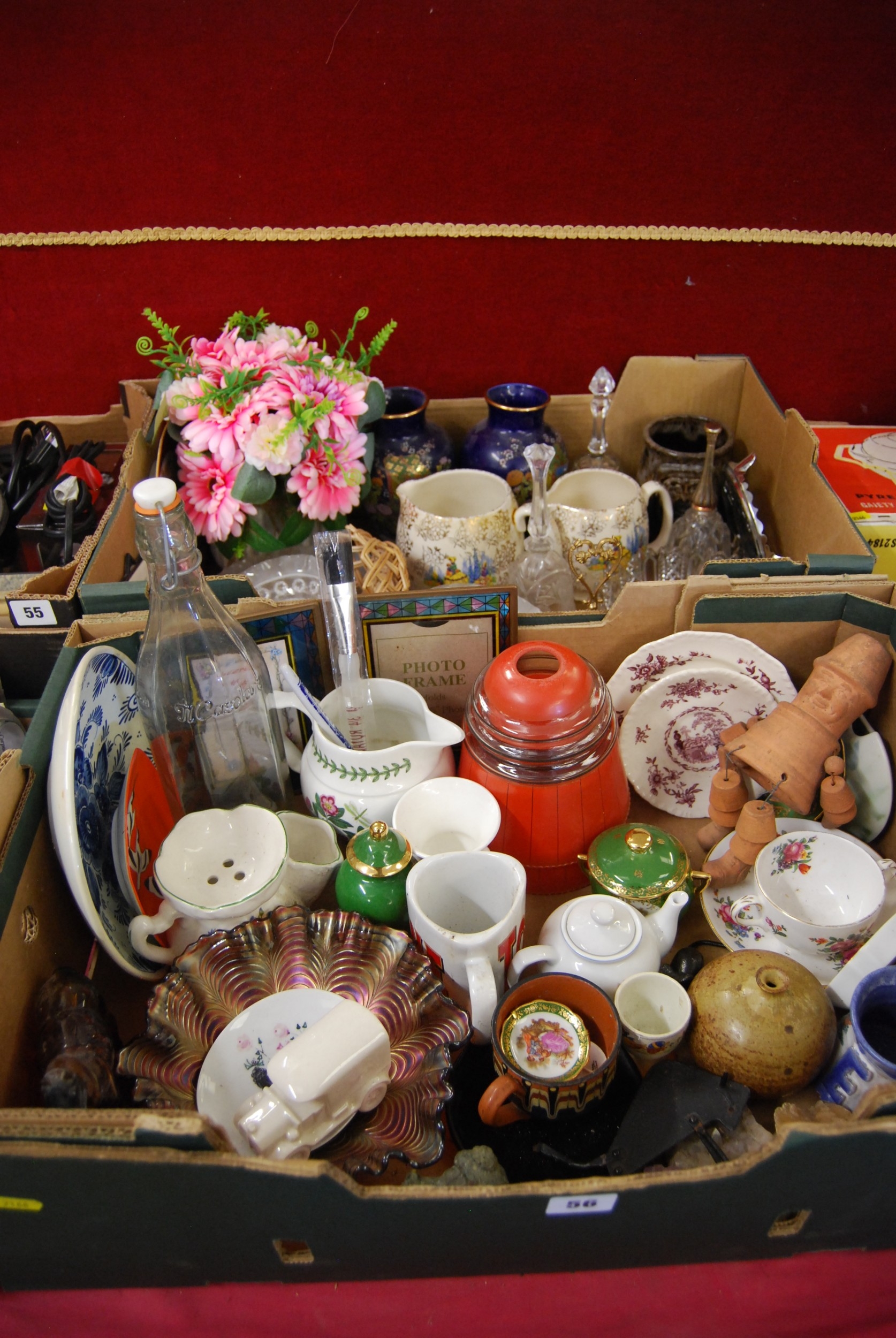 2 BOXES OF DECORATIVE CHINA, GLASSWARE, ETC