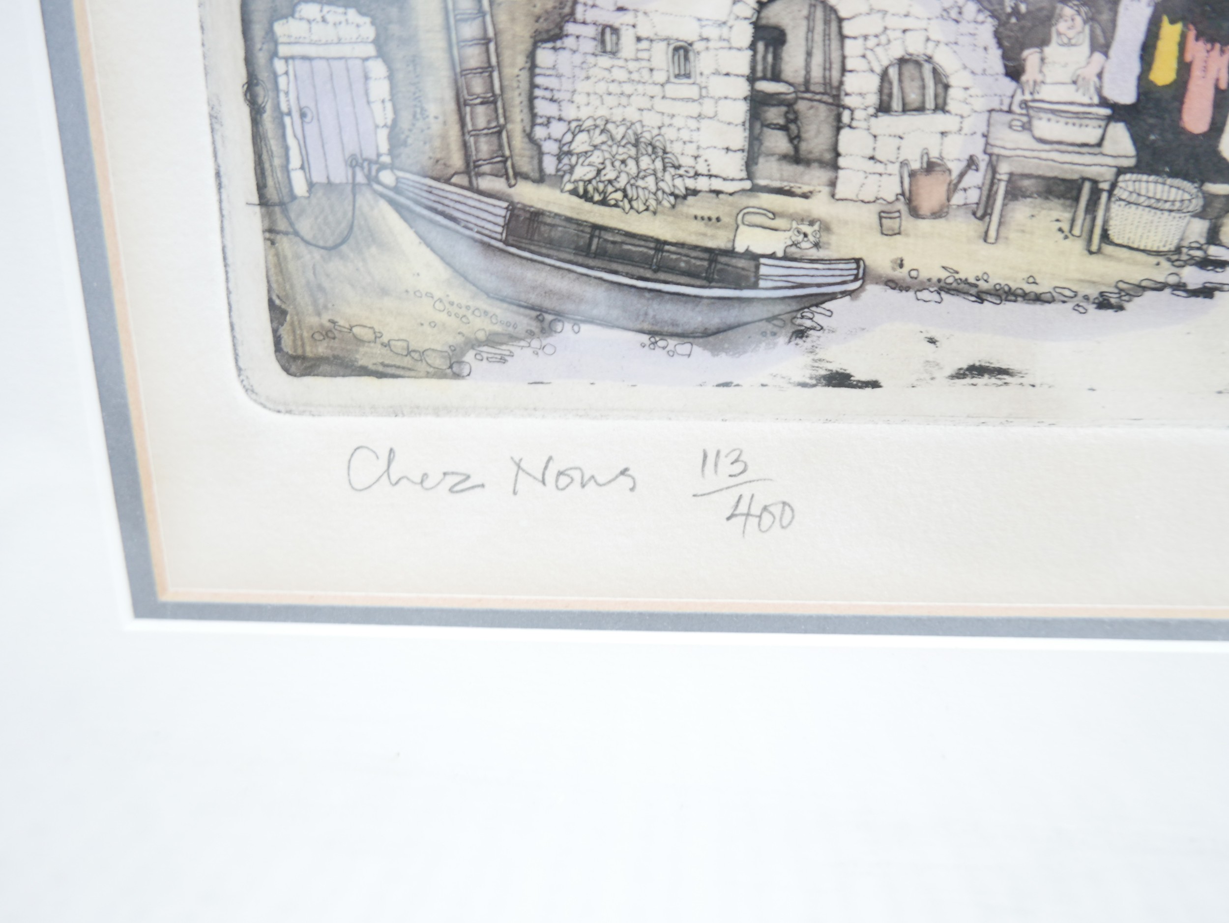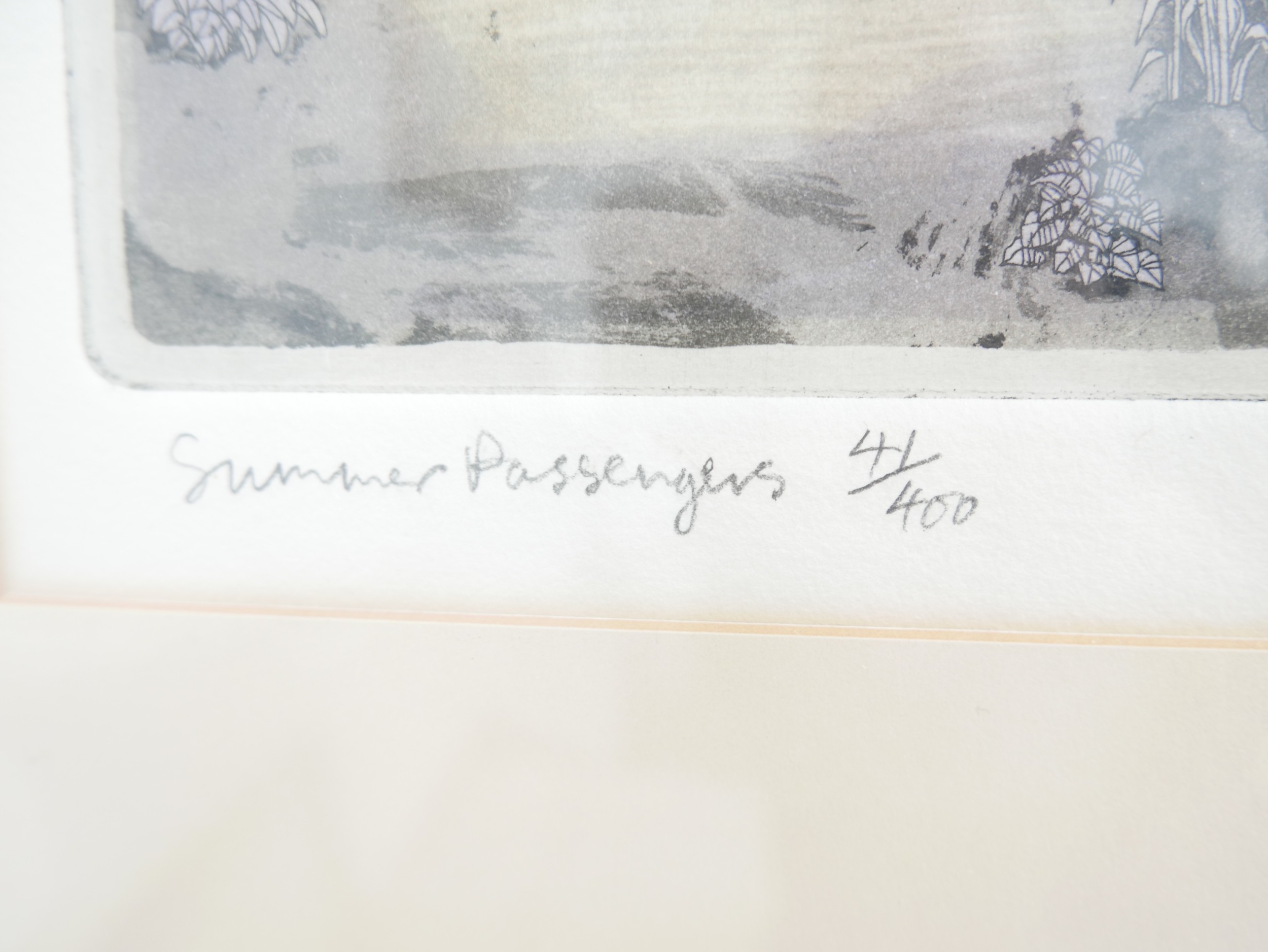 Graham Clarke (b.1941) two coloured limited edition prints "Chez Nous" 113/400 and "Summer Passengers" 41/400, frame size 74 by 56cm. (2)