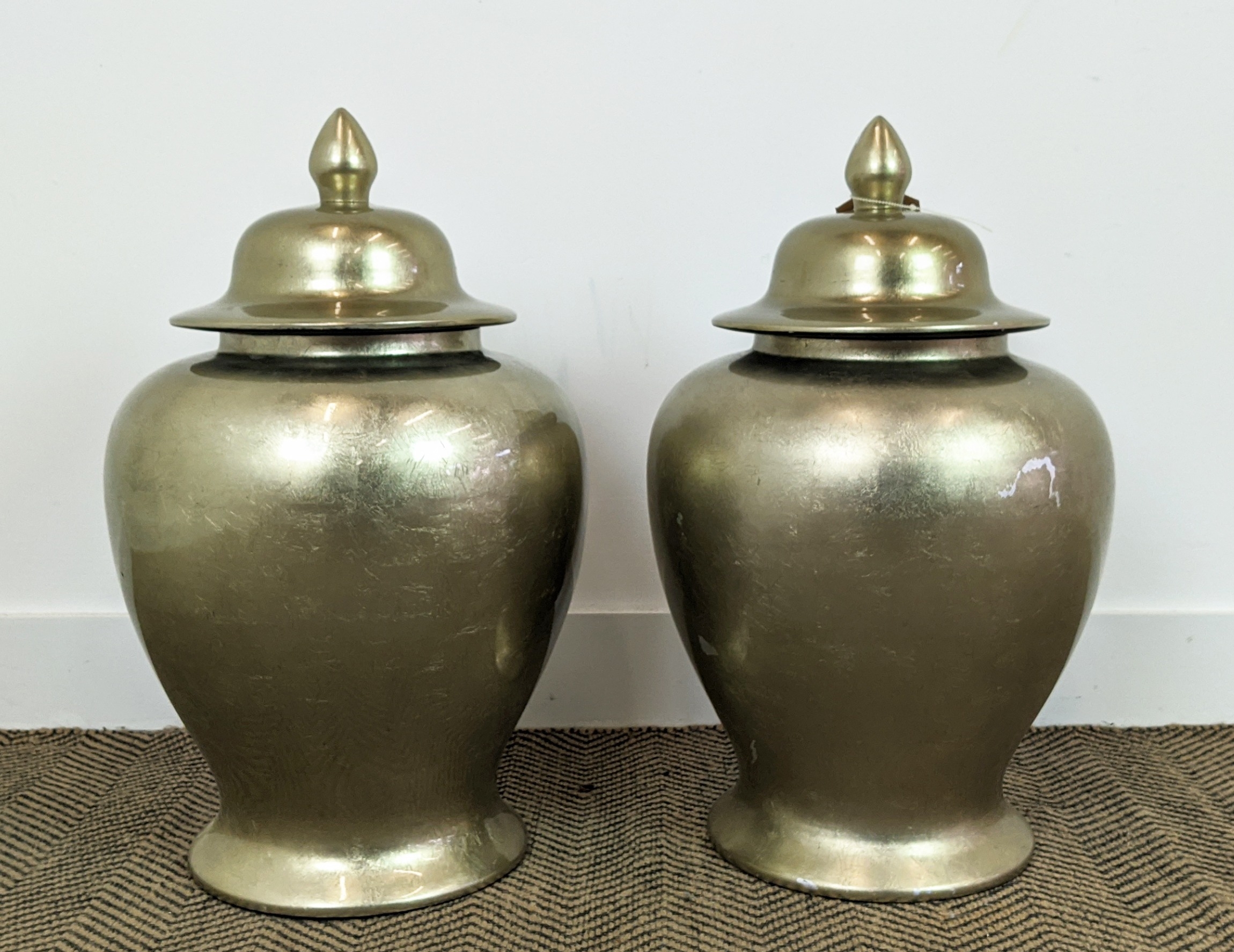 TEMPLE JARS, a pair, glazed ceramic, 60cm H.