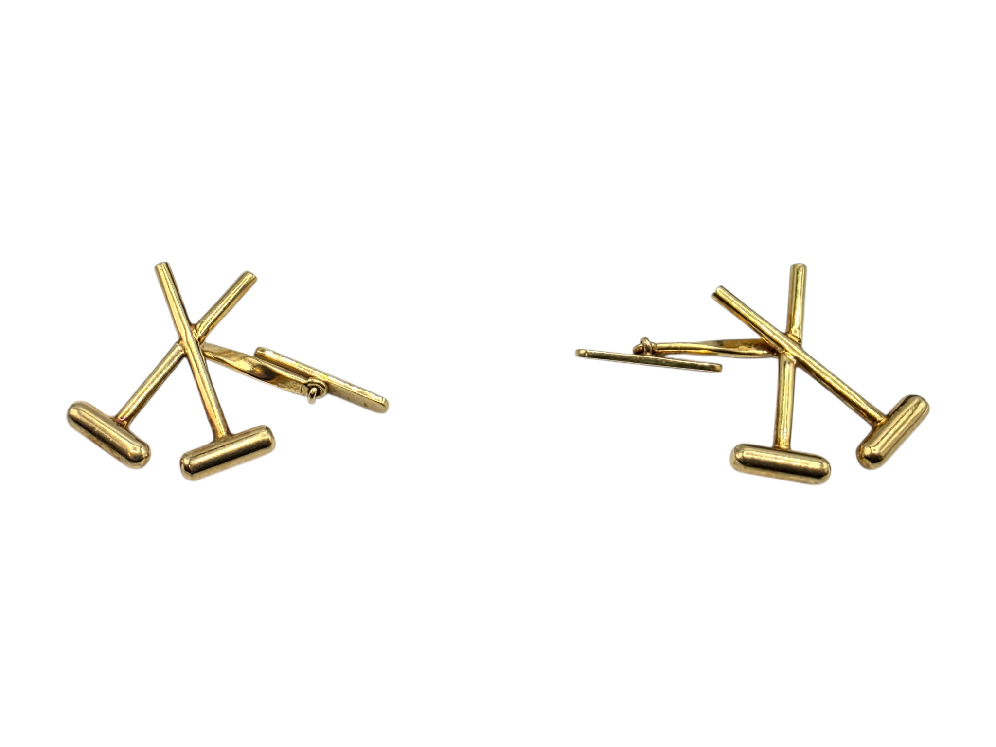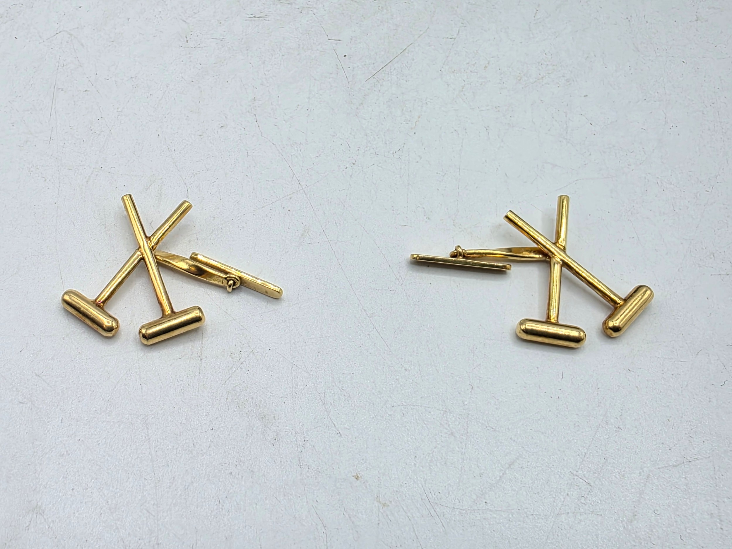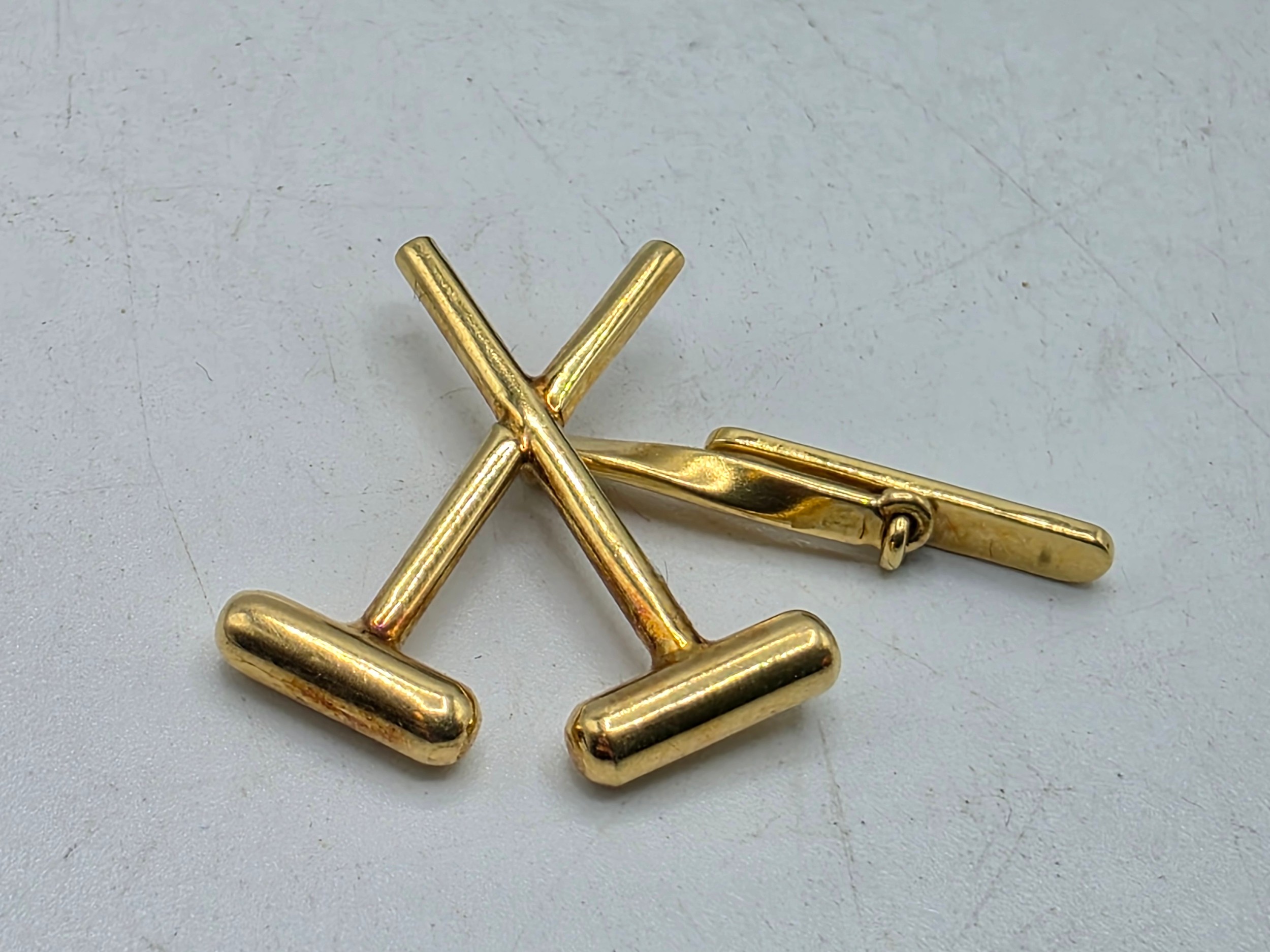 A pair of 18ct gold gents cufflinks in the form of crossed polo mallets. 7.5 g.