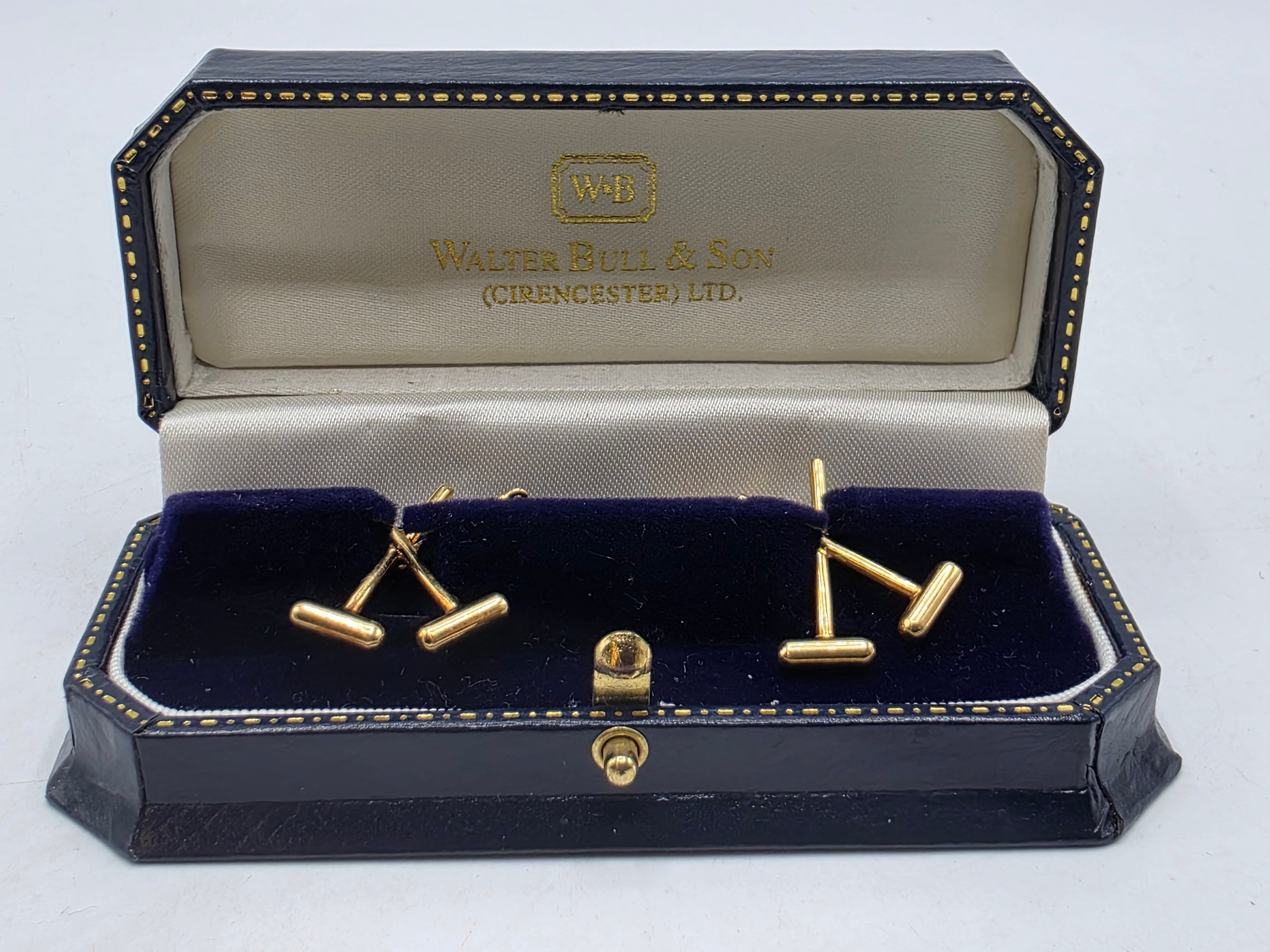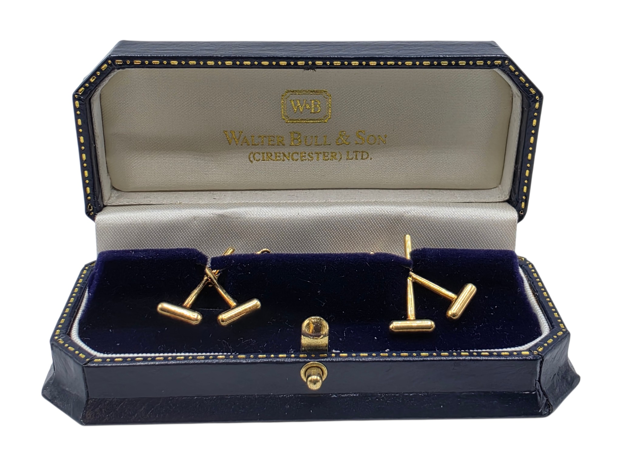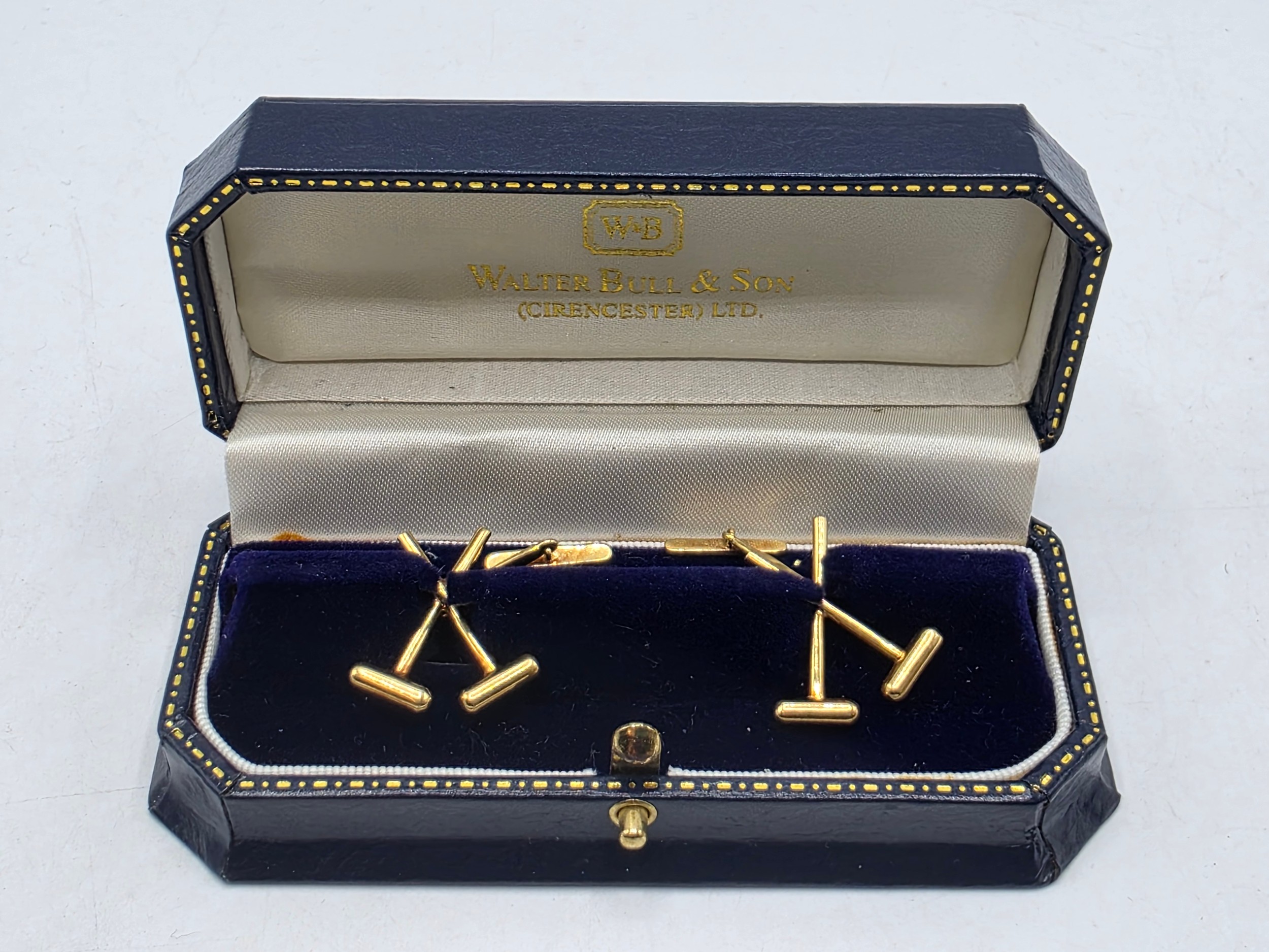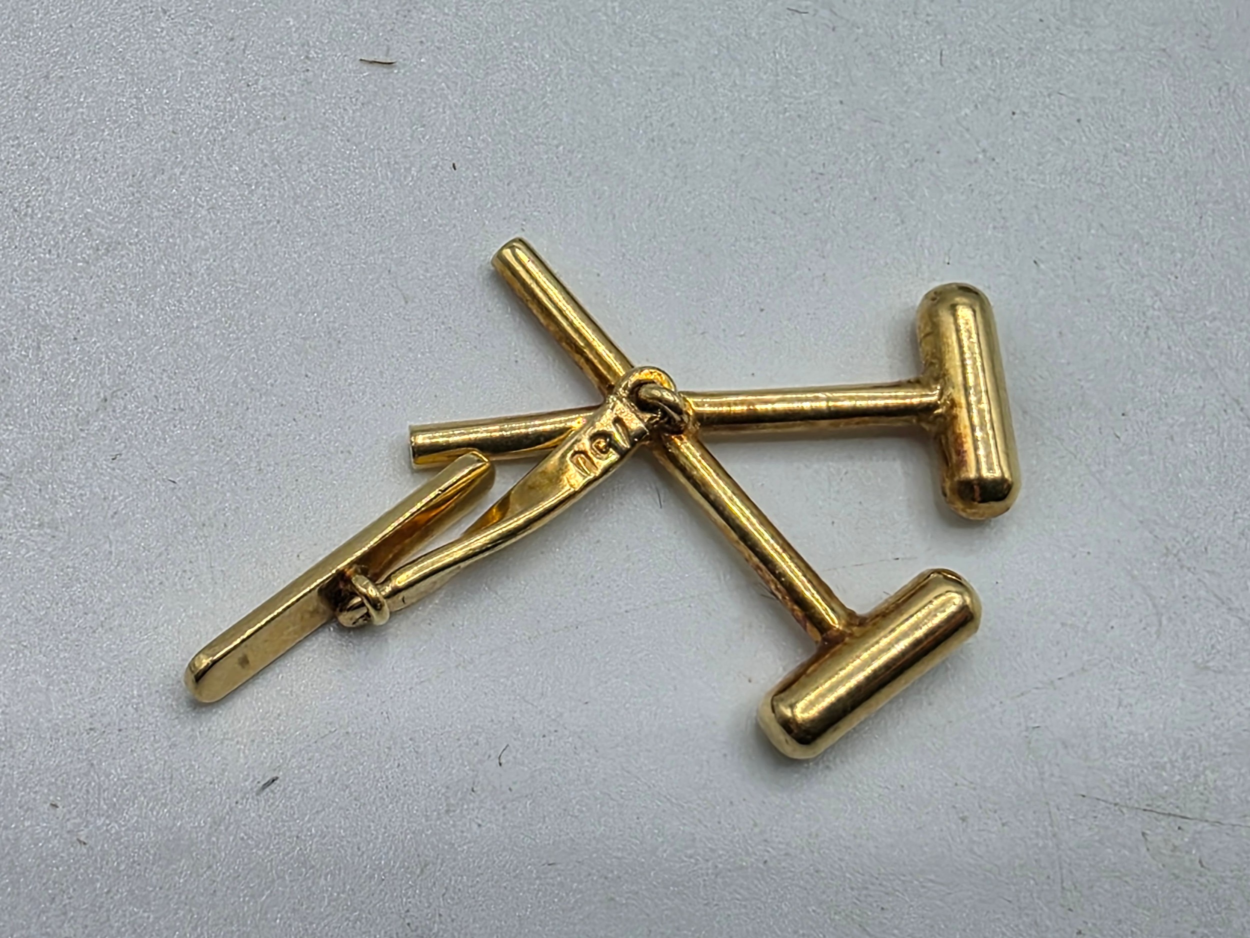 A pair of 18ct gold gents cufflinks in the form of crossed polo mallets. 7.5 g.