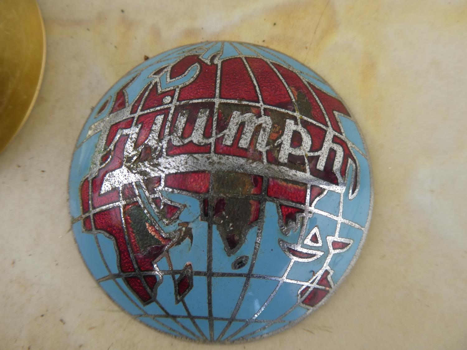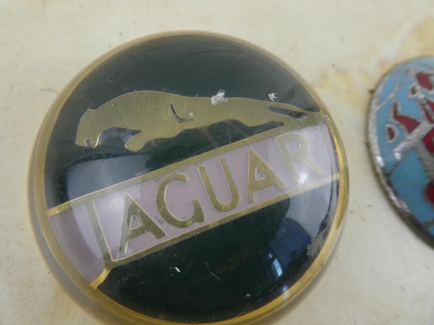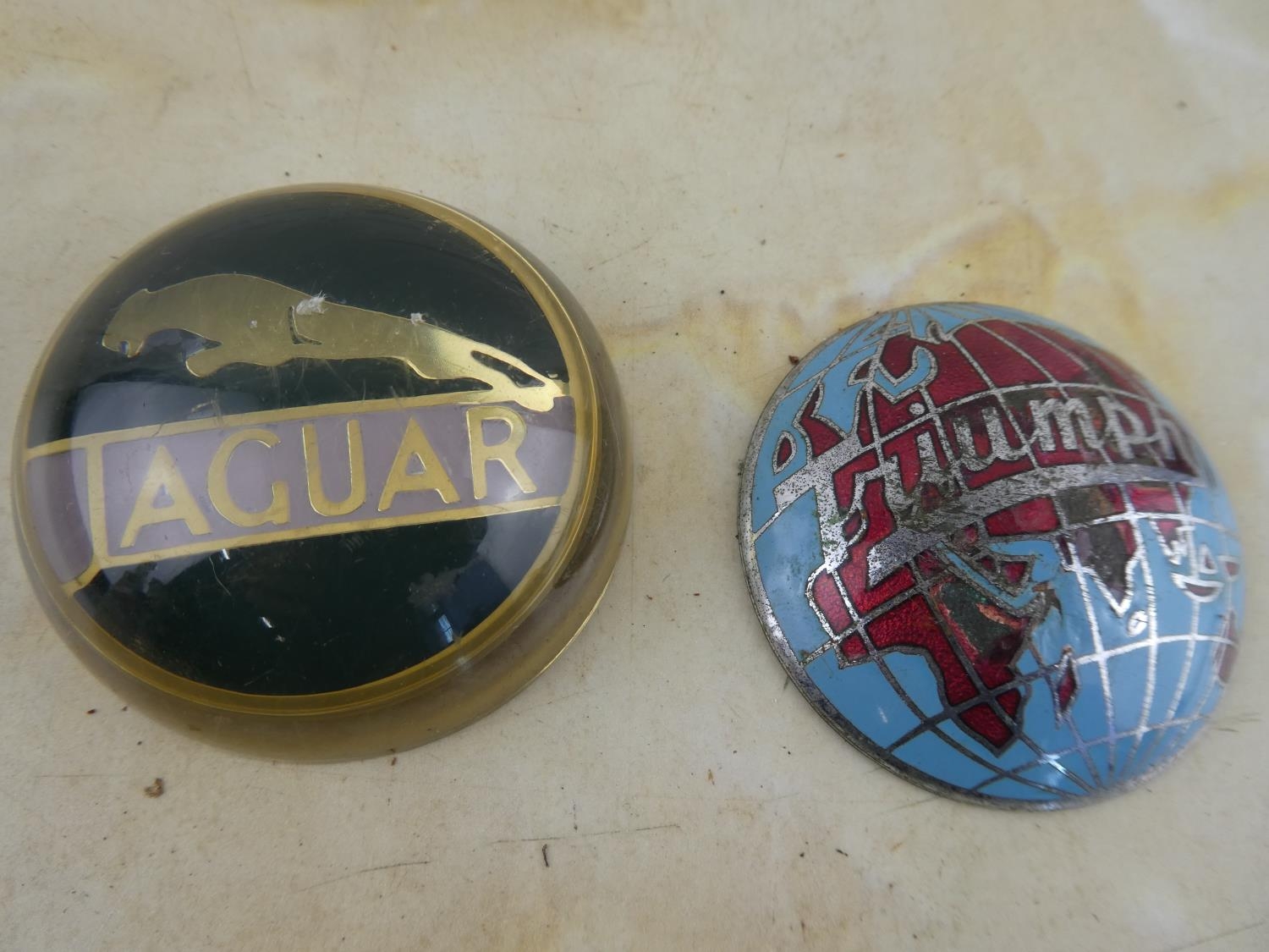 2 vintage car badges to include Triumph & Jaguar.