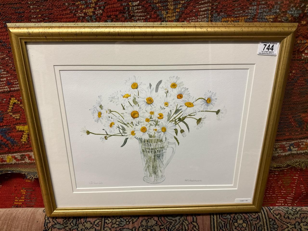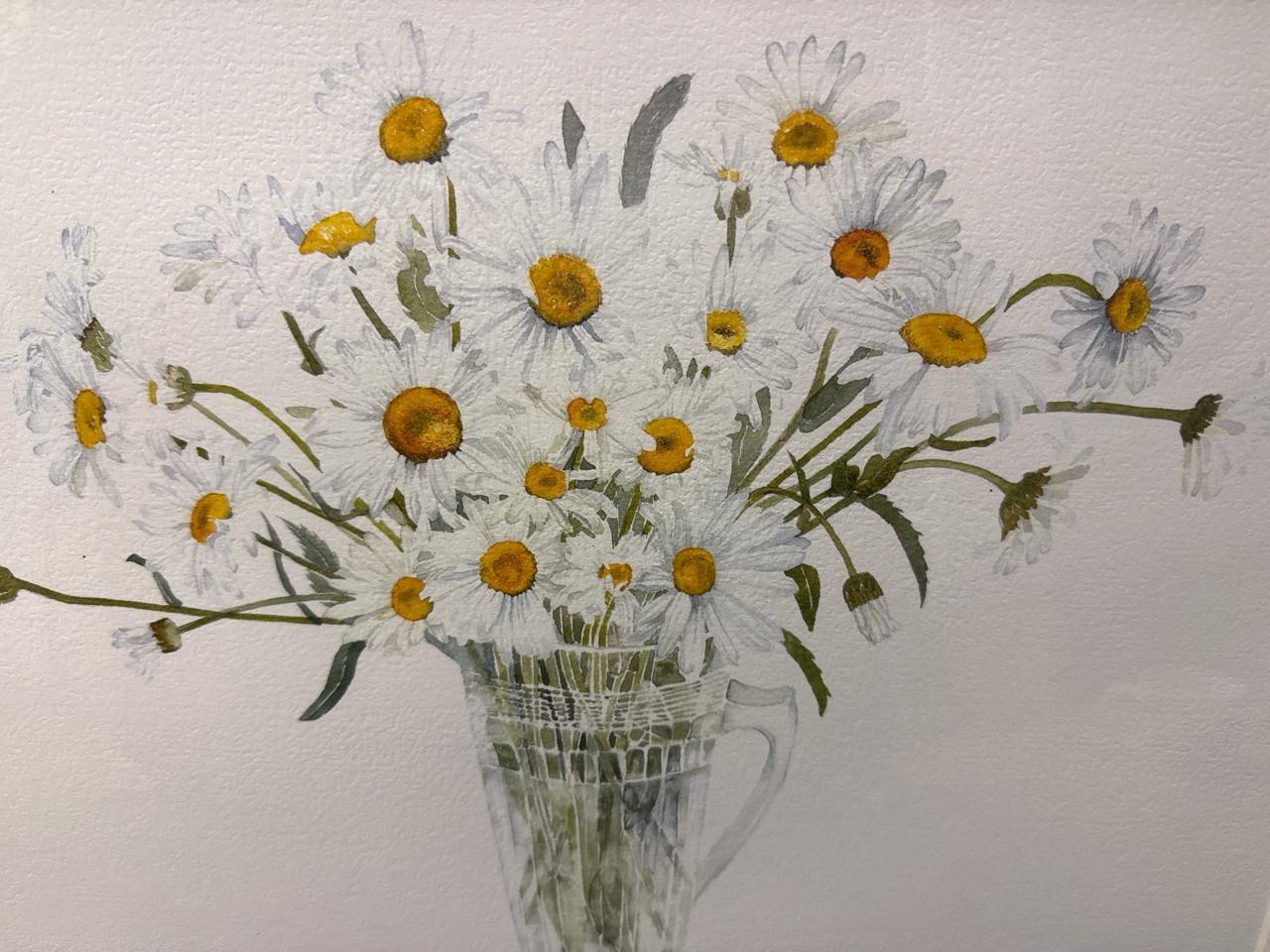 Delightful still life watercolour painting of daisies in a glass jug. Signed AP Silverthorne (?). Frame approx 45cm x 55.5cm