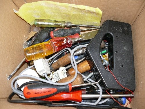A SELECTION OF VARIOUS TOOLS AND HARDWARE ITEMS.