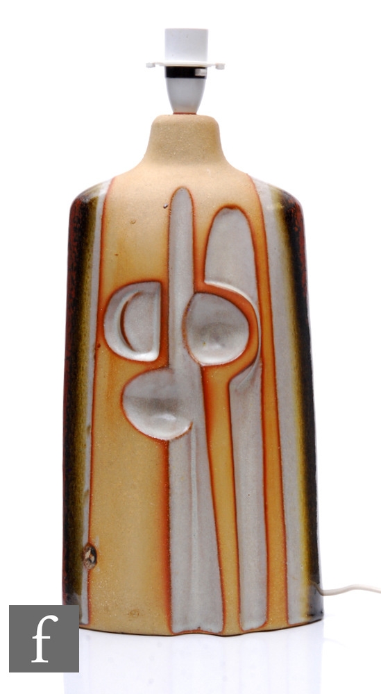 Peter Ellery for Tremaen Studio - A 1970s 'Zennor Series', sculptural modernist ceramic lamp base, with buff and ochre glazes, height 40cm.