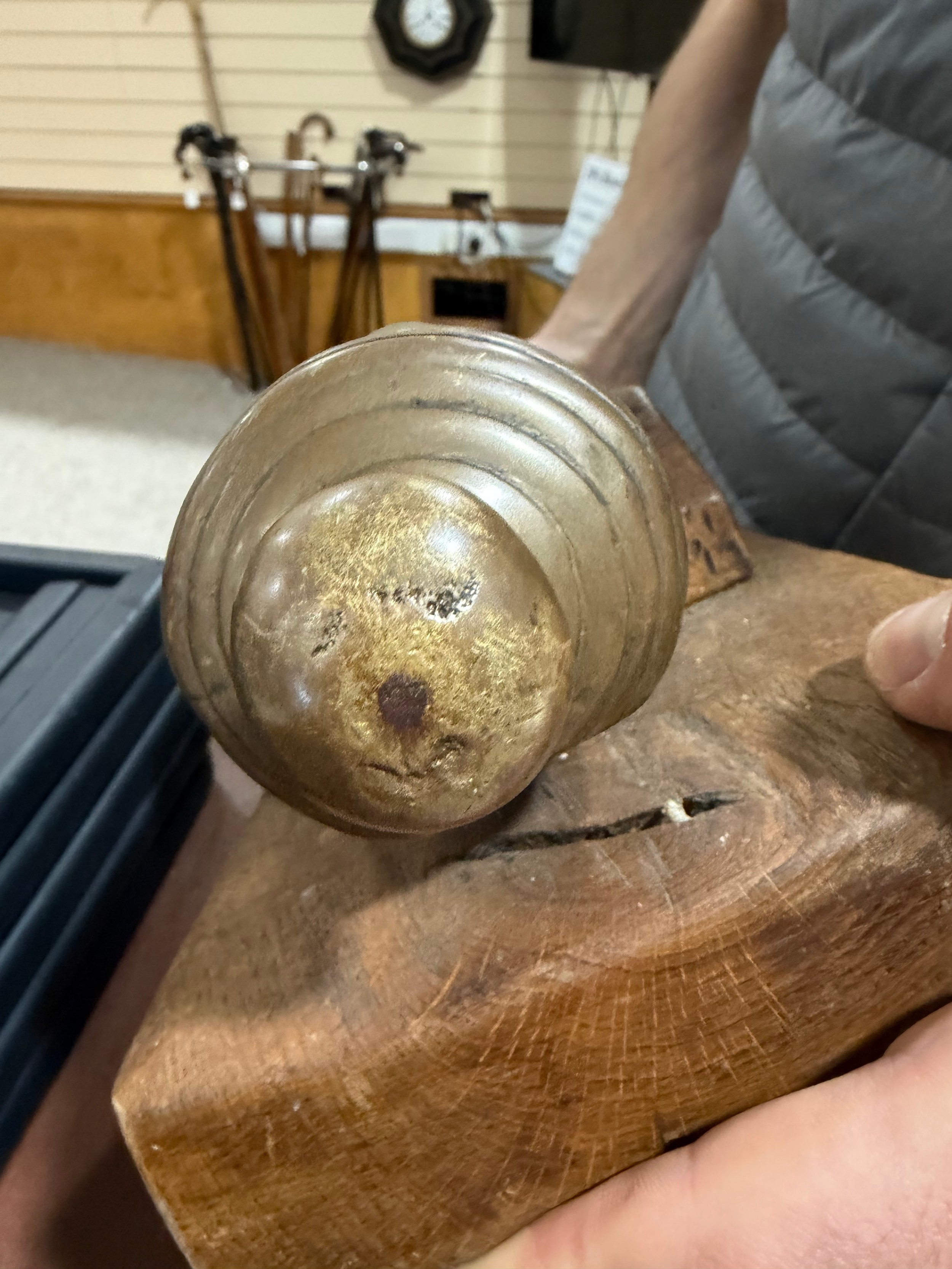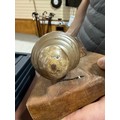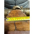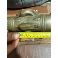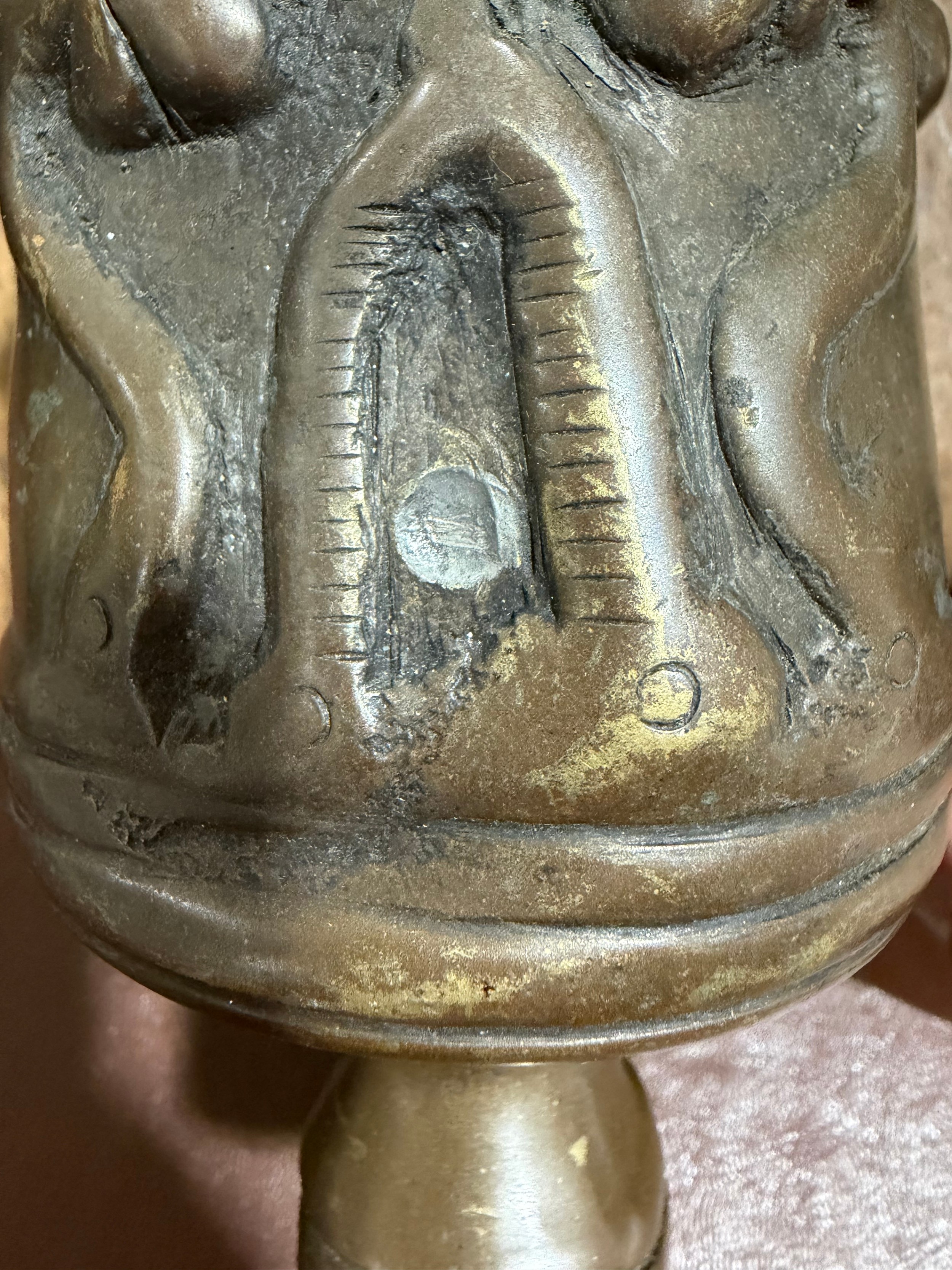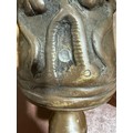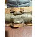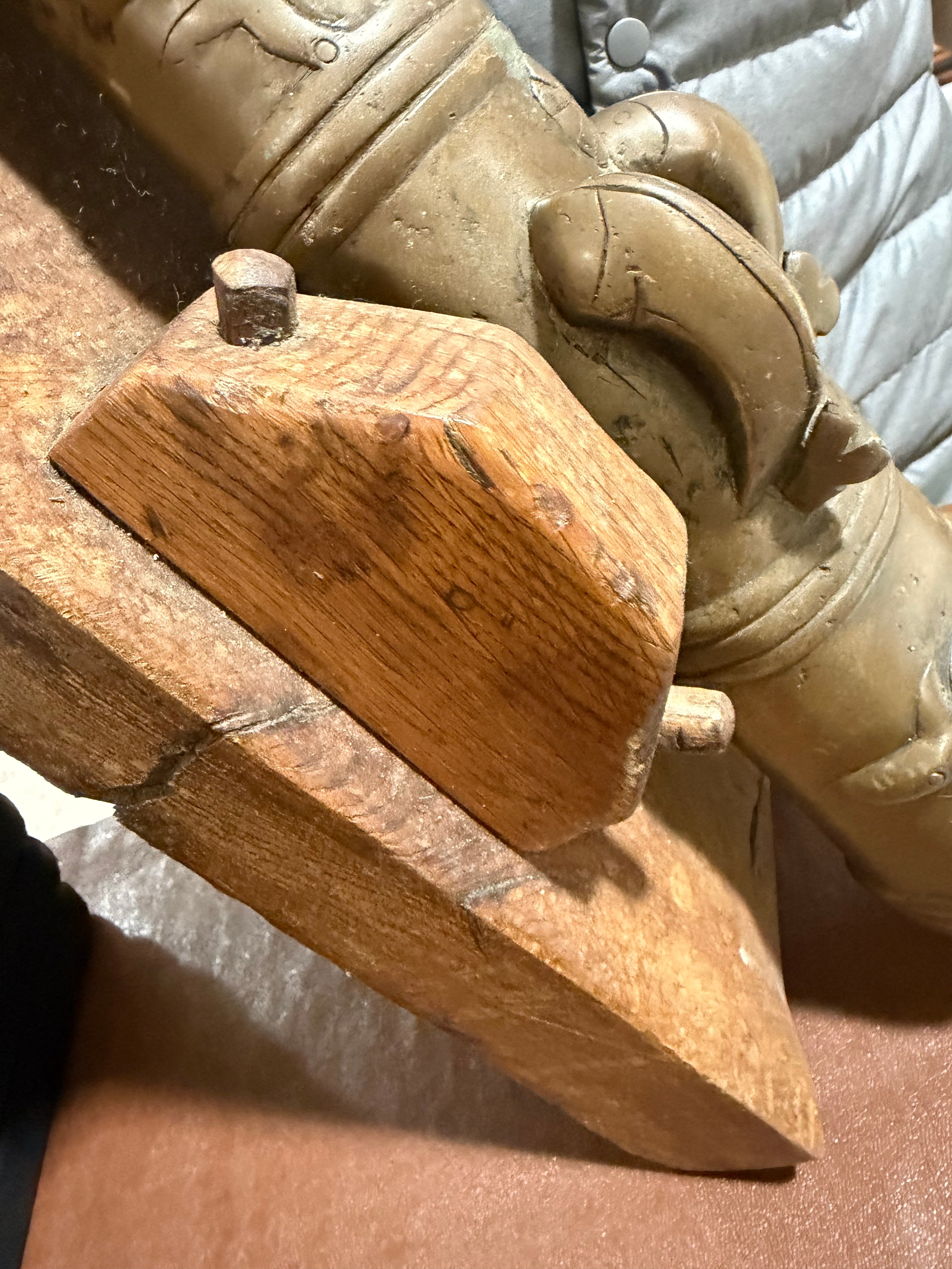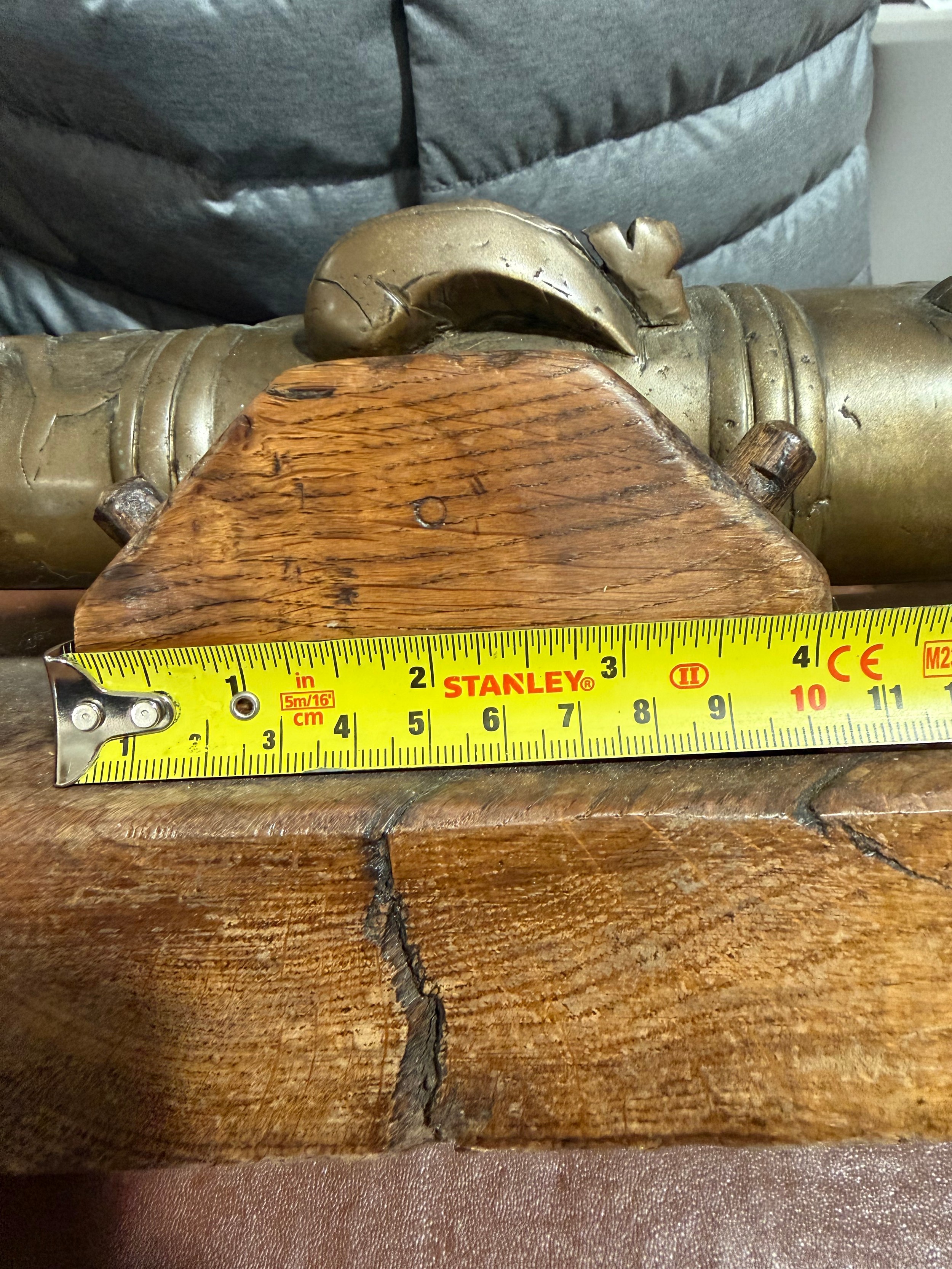 A heavy solid cast-bronze model cannon, on rustic wood stand, barrel length 41cm