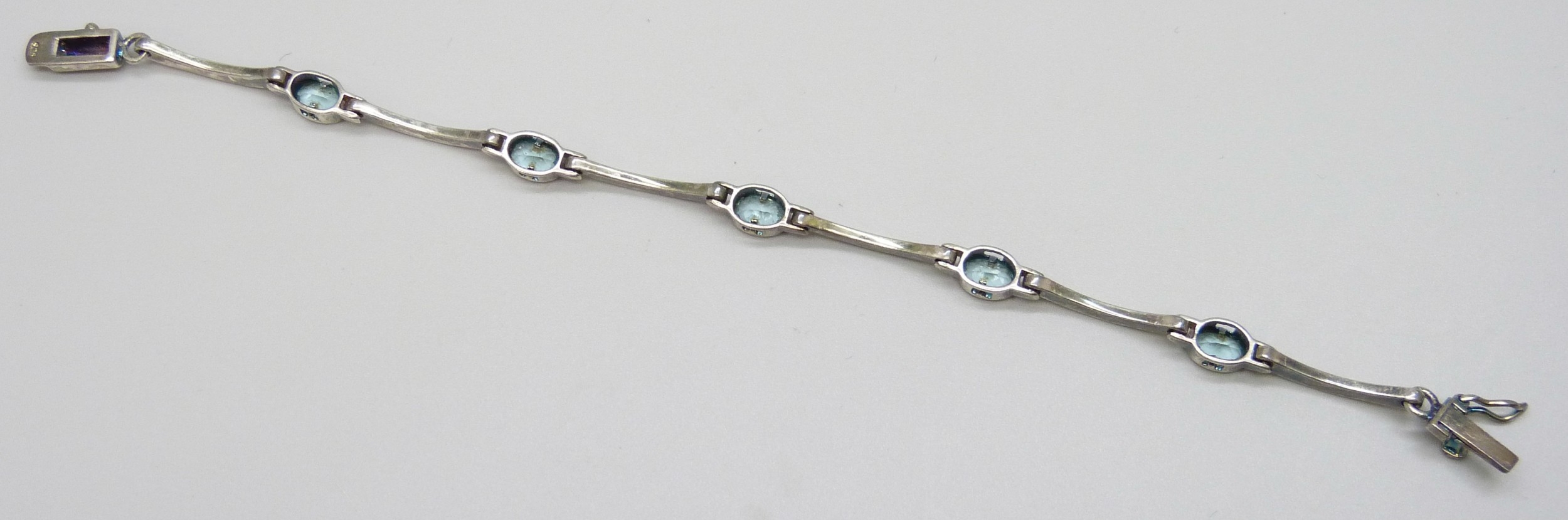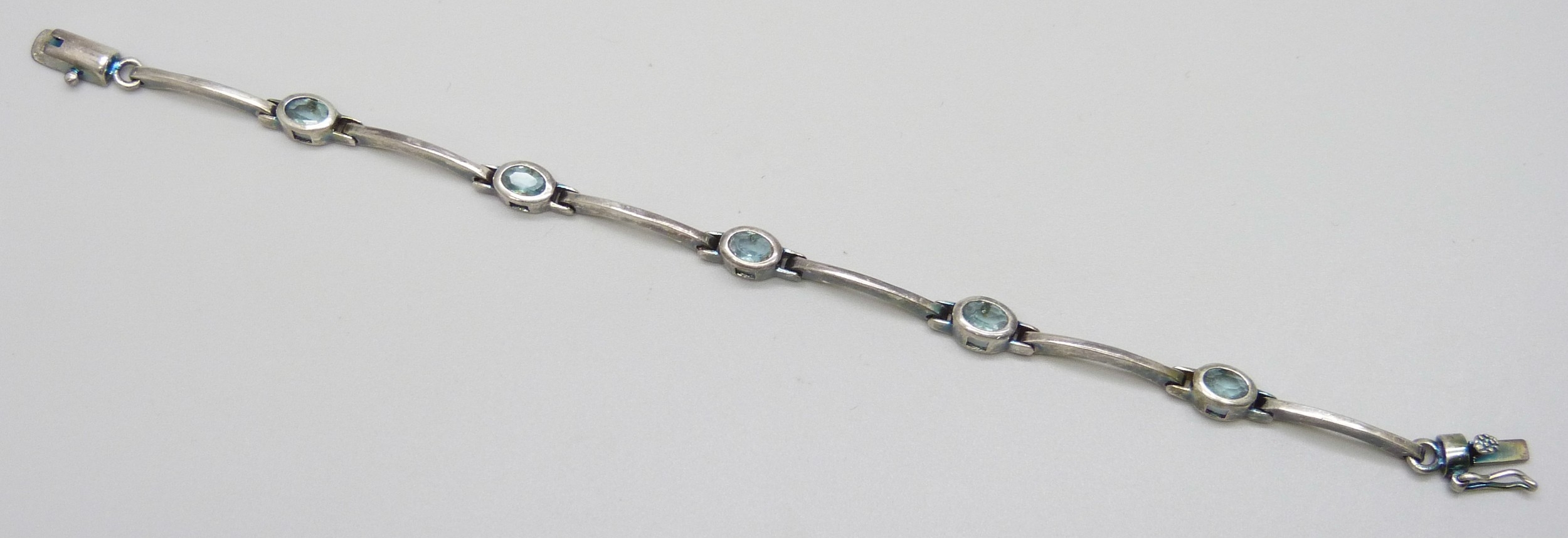 A silver and blue paste stone bracelet, 17.5cm