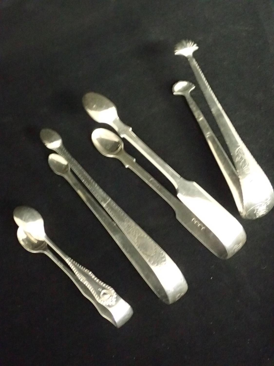 A collection of four silver sugar tongs, (two are Irish circa 1790's, total weight approx. 154 grams