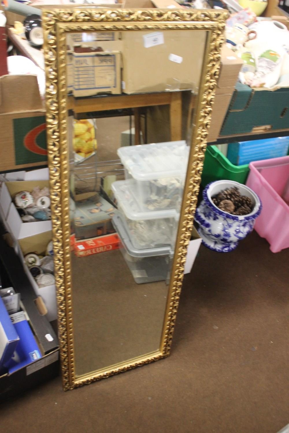 A GILT FRAMED MIRROR 42.5 CM X 14.5 CM